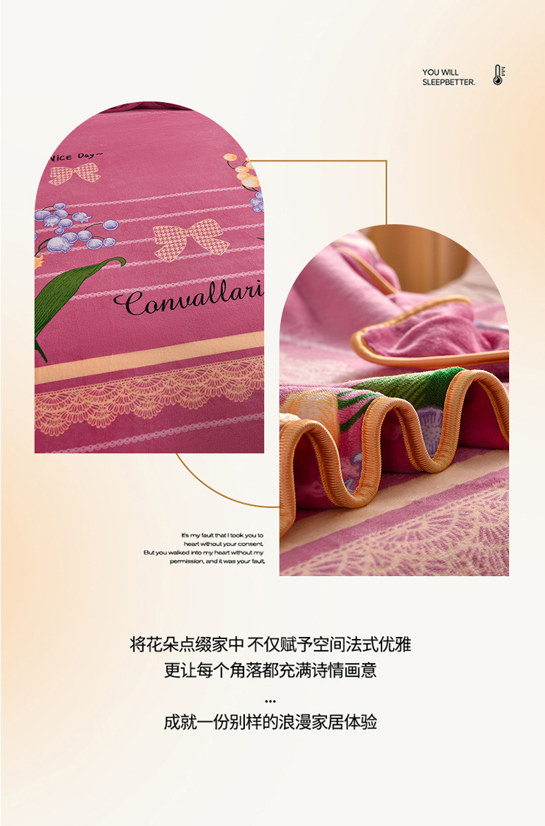 佳一 2025新款高克重8-9斤 印花牛奶绒四件套 花样情怀,花样情怀