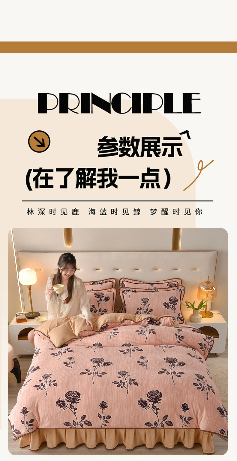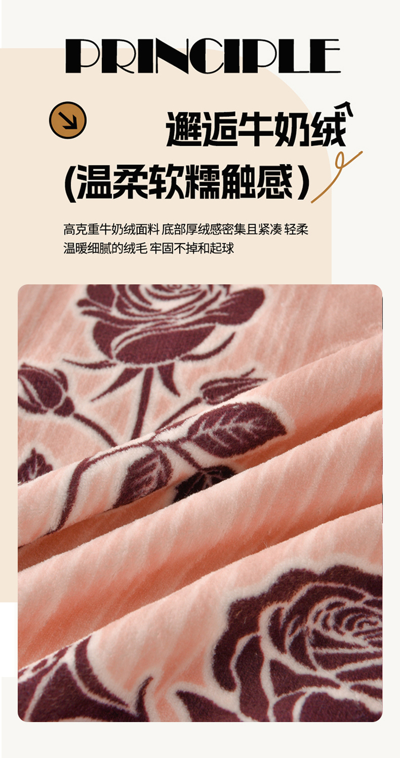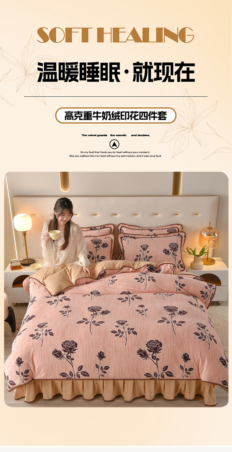 佳一 2025新款高克重8-9斤 印花牛奶绒四件套 玫瑰之吻,玫瑰之吻