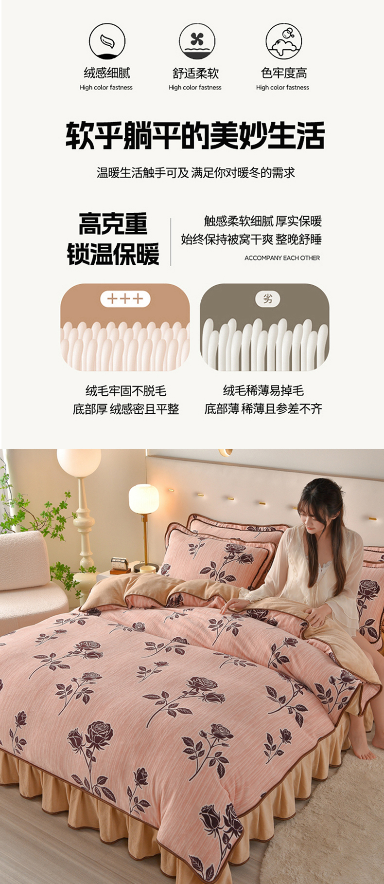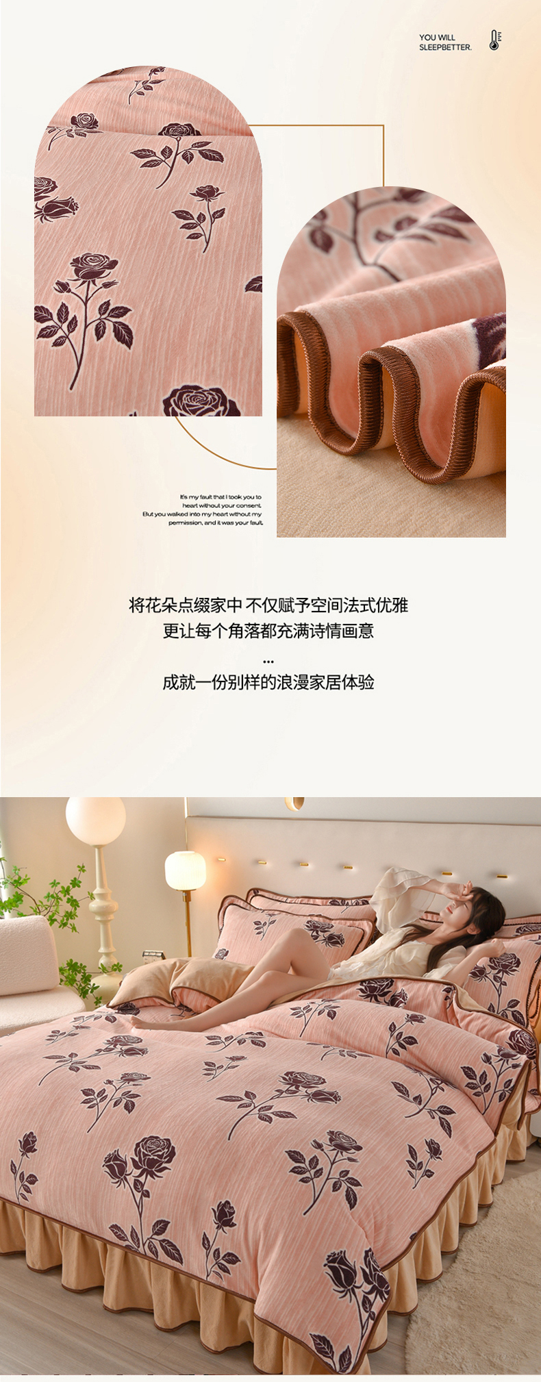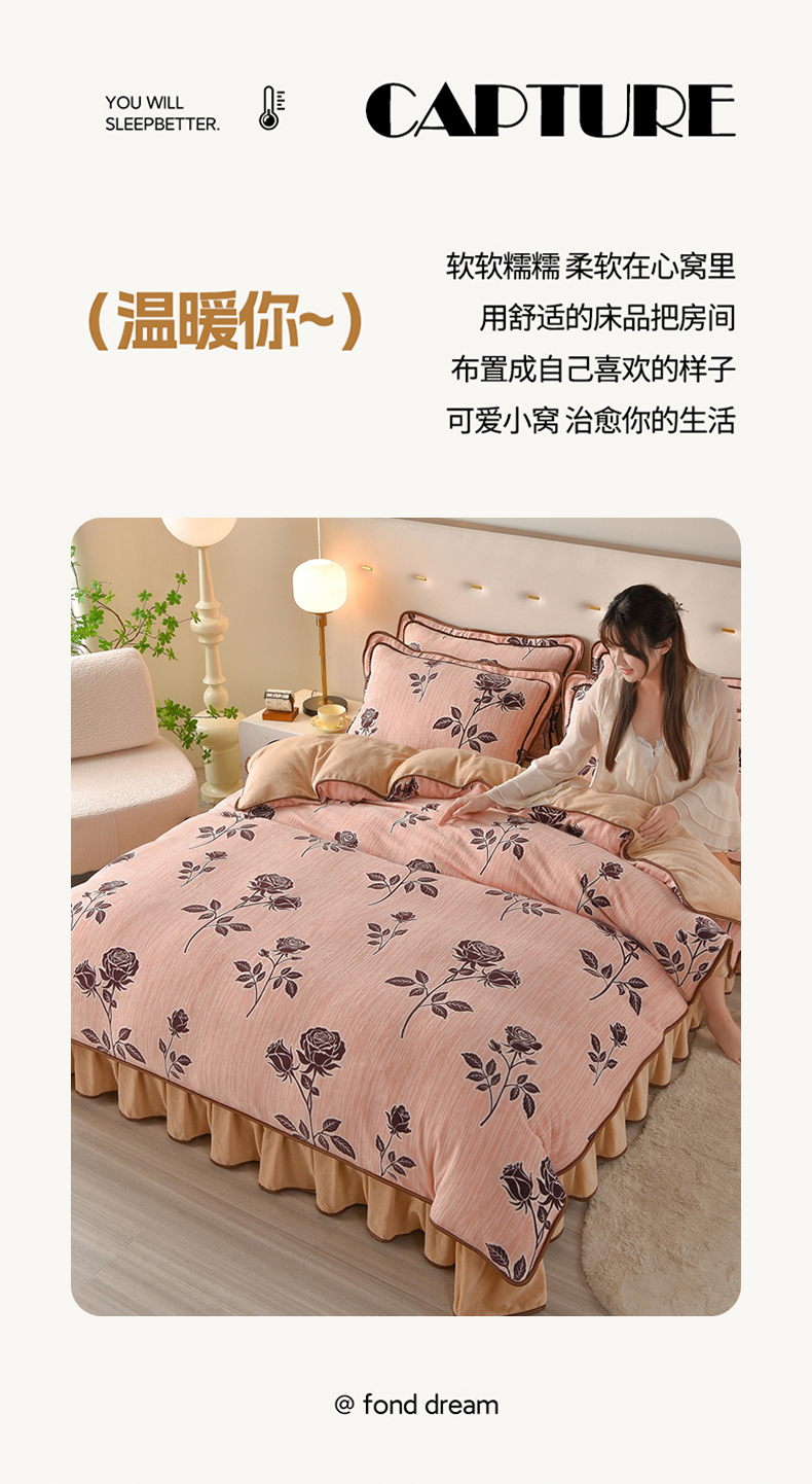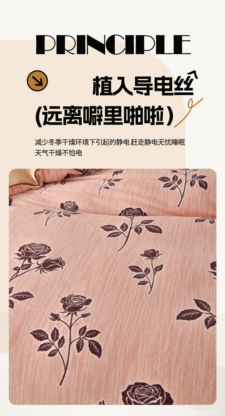 佳一 2025新款高克重8-9斤 印花牛奶绒四件套 玫瑰之吻,玫瑰之吻