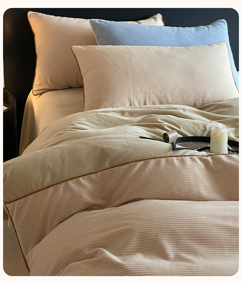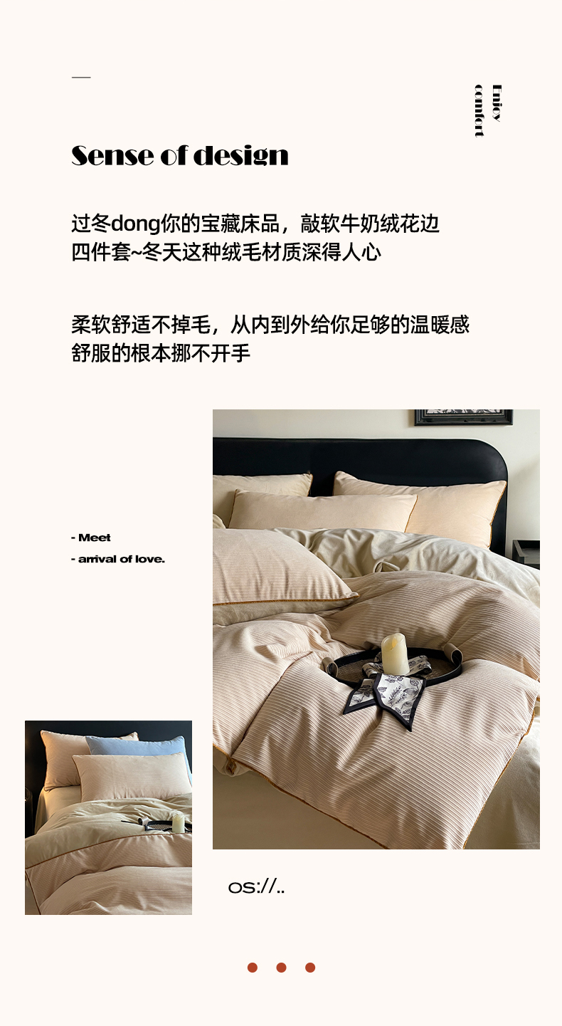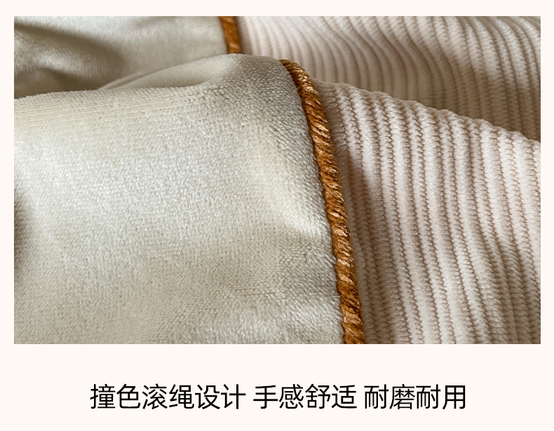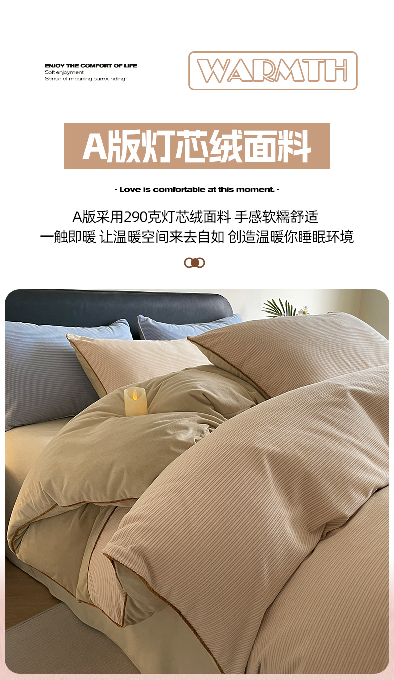 商品名称:羚羊语家纺 2025新款280克灯芯绒婴儿绒四件套高级嵌绳拼接款水晶绒宝宝绒牛奶绒床单床笠款三件套-奶芙绒系列 微醺午后