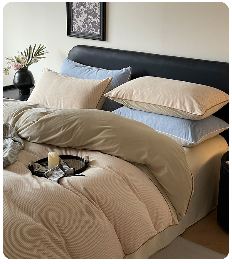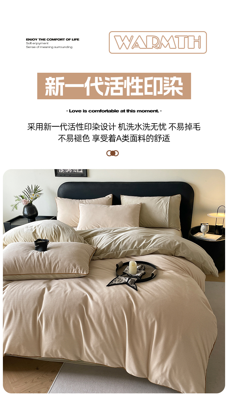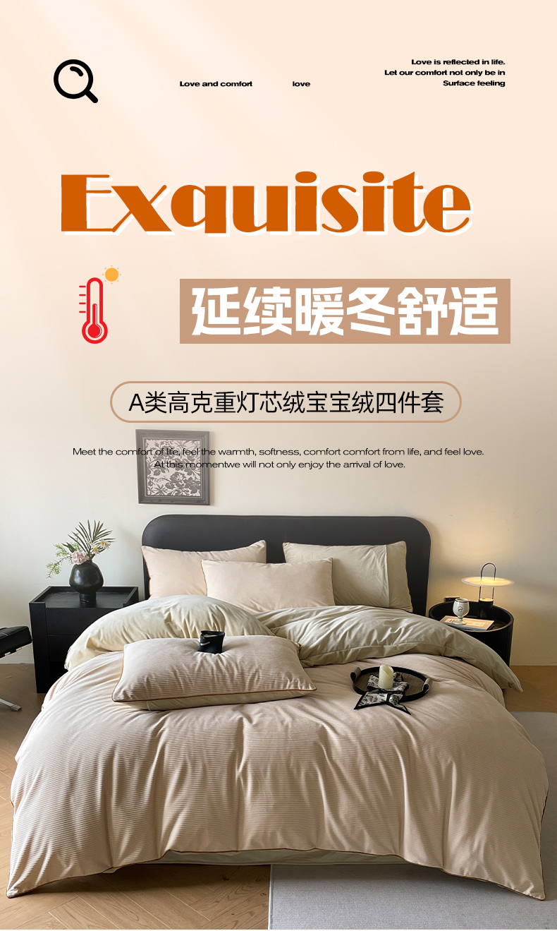 商品名称:羚羊语家纺 2025新款280克灯芯绒婴儿绒四件套高级嵌绳拼接款水晶绒宝宝绒牛奶绒床单床笠款三件套-奶芙绒系列 微醺午后