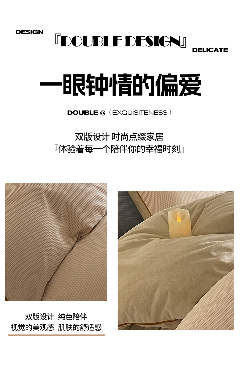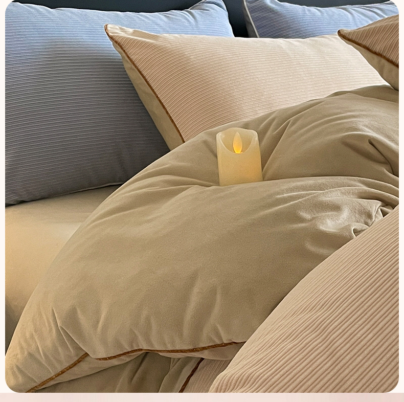 羚羊语家纺 2025新款280克灯芯绒婴儿绒四件套高级嵌绳拼接款水晶绒宝宝绒牛奶绒床单床笠款三件套-奶芙绒系列 微醺午后
