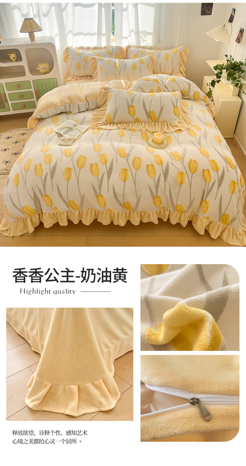 (总)爱家(原缔乐家纺) 2025新款牛奶雕花绒四件套-香香公主,香香公主-公主粉,香香公主-梦幻紫,香香公主-奶油黄