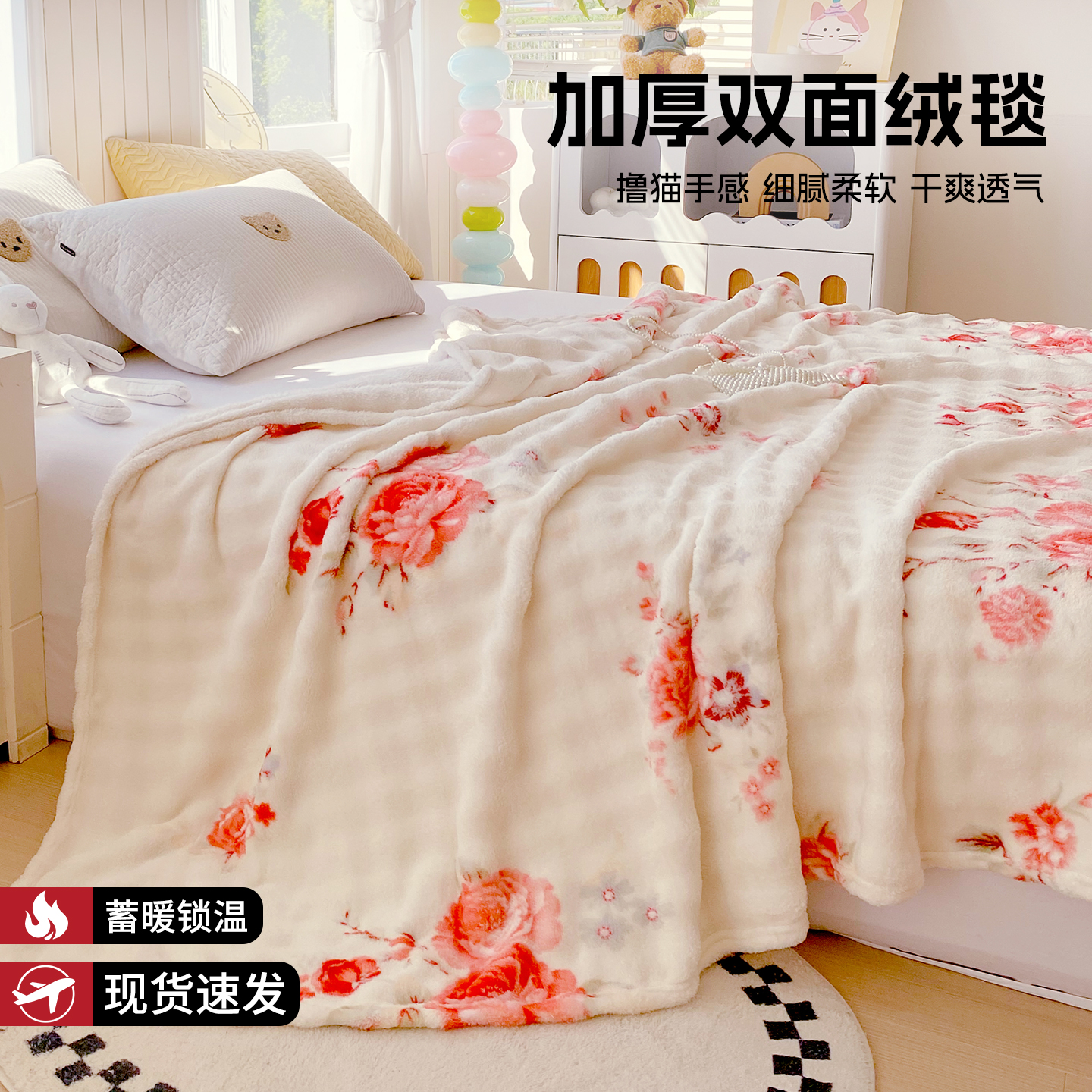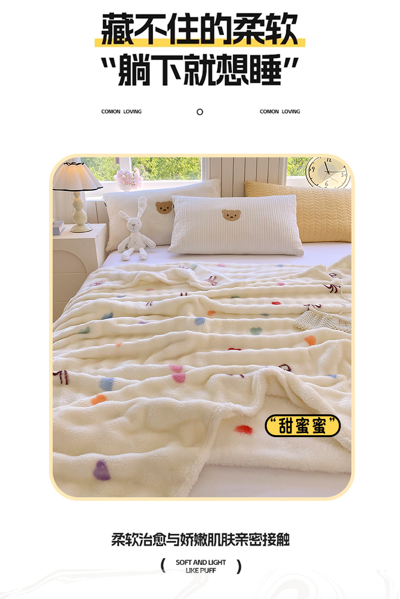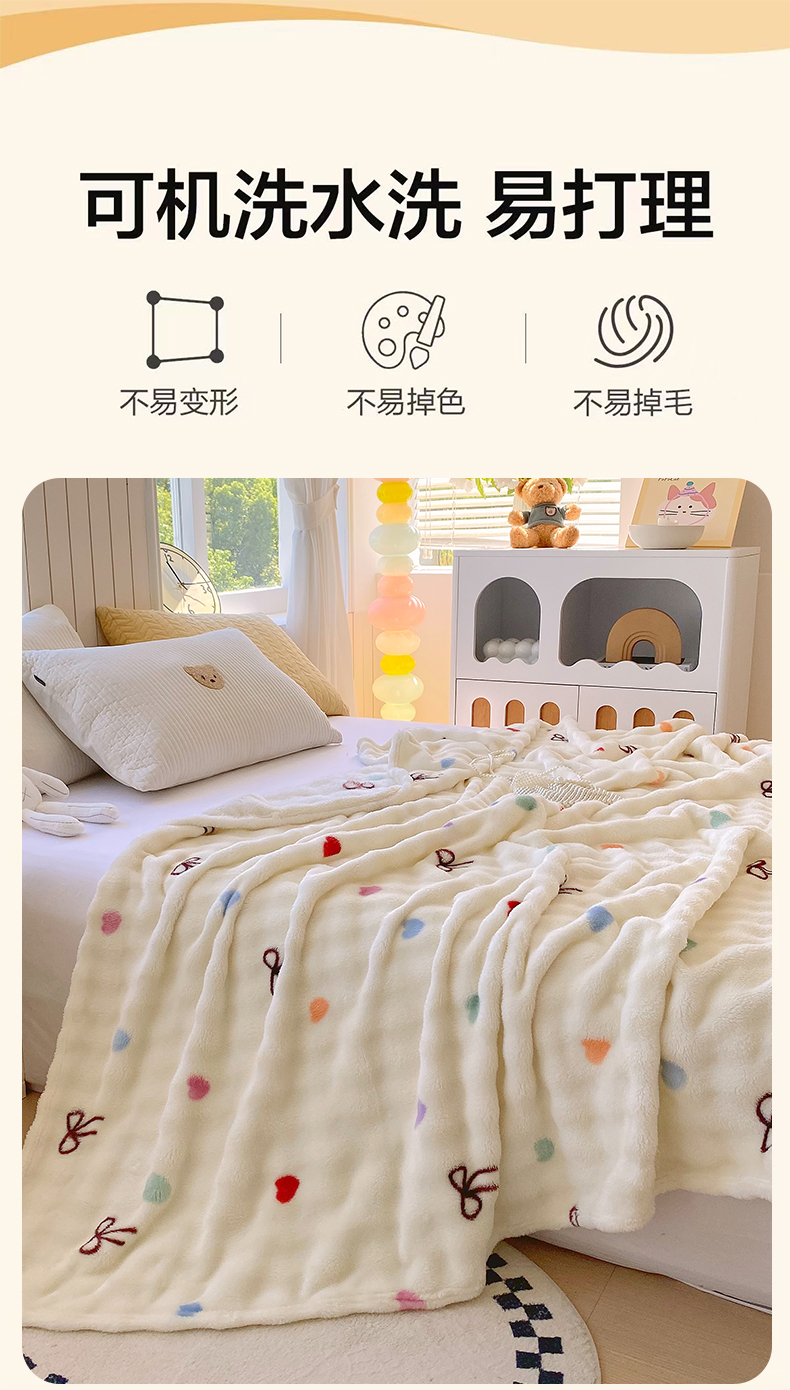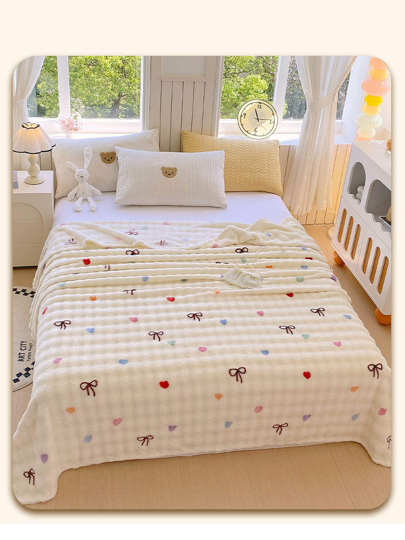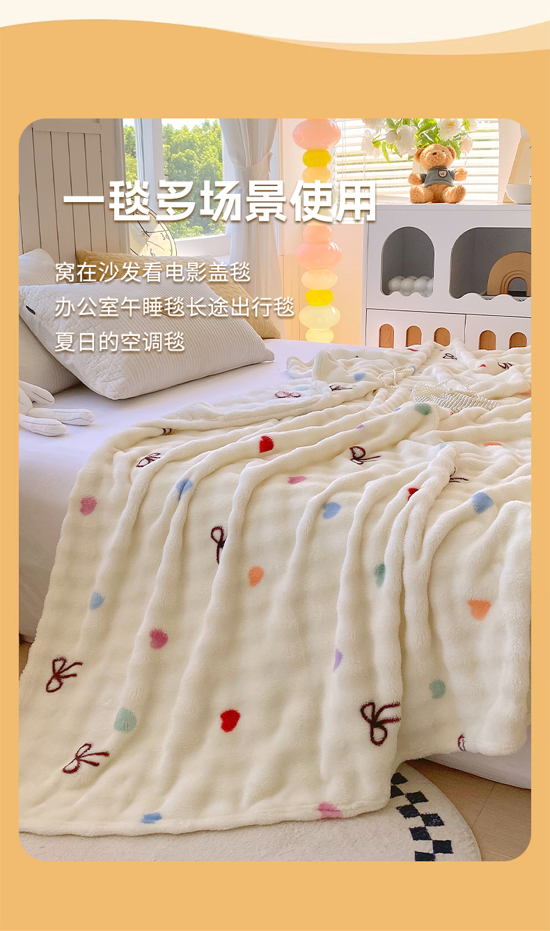 悦织湾家纺 2025新款双面加厚泡泡绒毛毯印花纯色仿兔毛绒牛奶绒毯子休闲小盖毯沙发办公室午睡毯 温馨