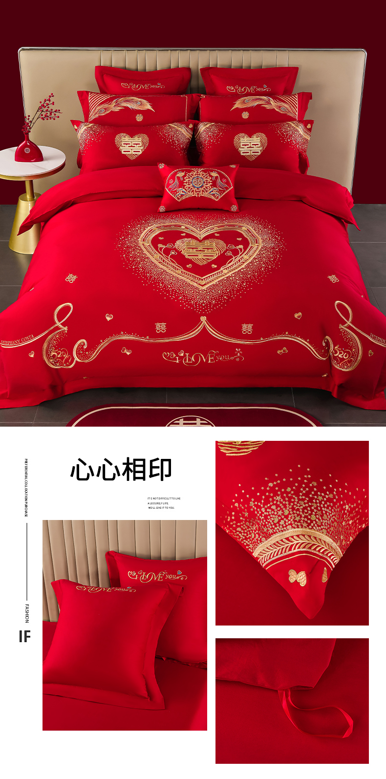 当前位置: 91家纺网 > 商品网购 > 床品套件 > 四件套 > 婚庆四件套 > 董成龙家纺 2025新款全棉中式精美绣花工艺婚庆系列四件套多件套 真爱永恒