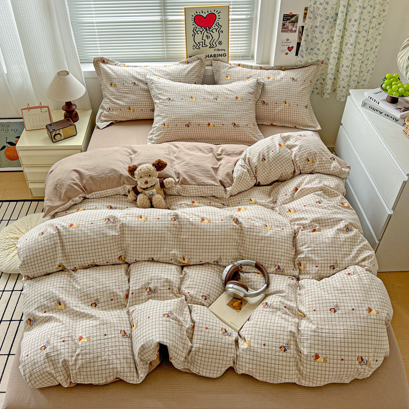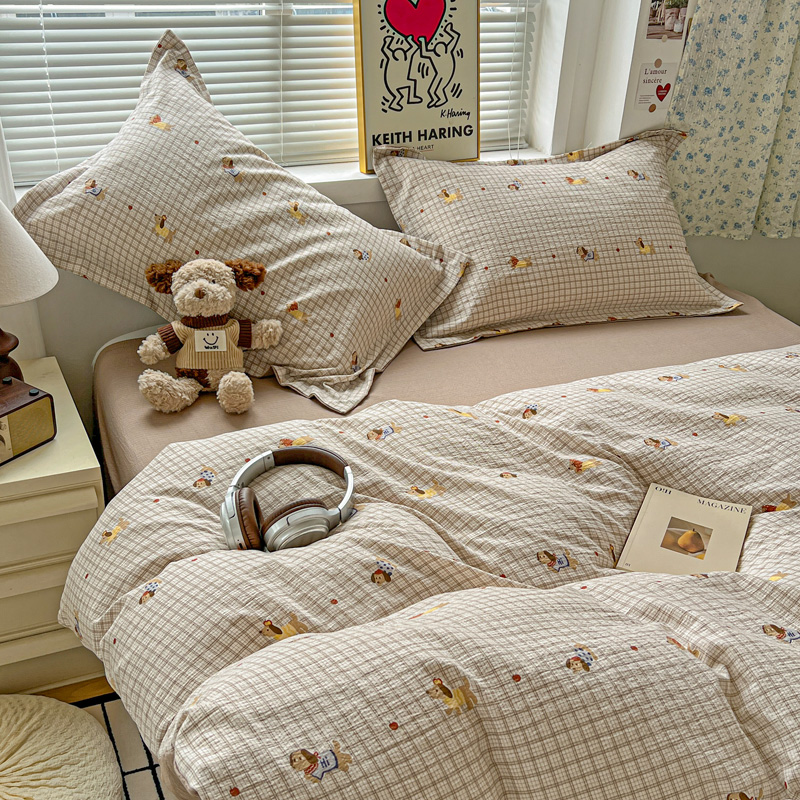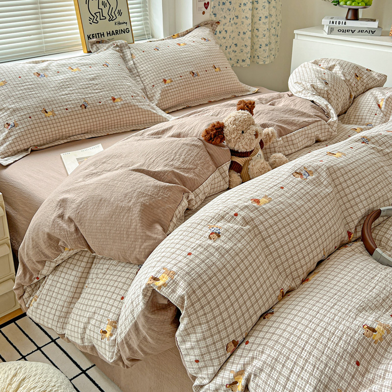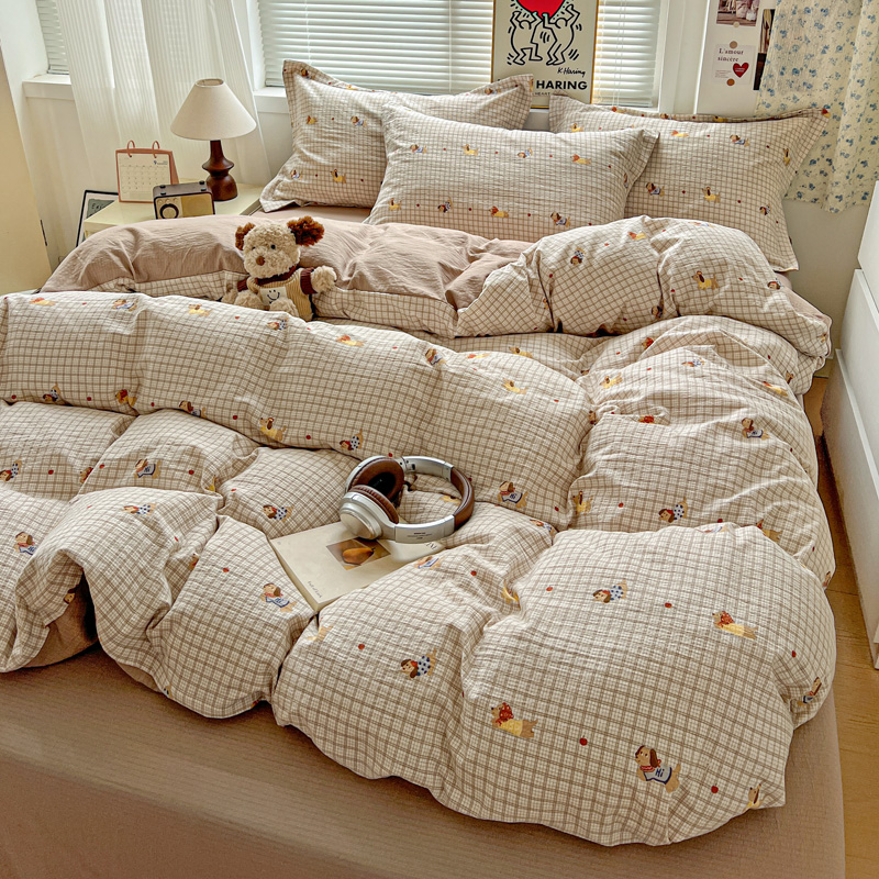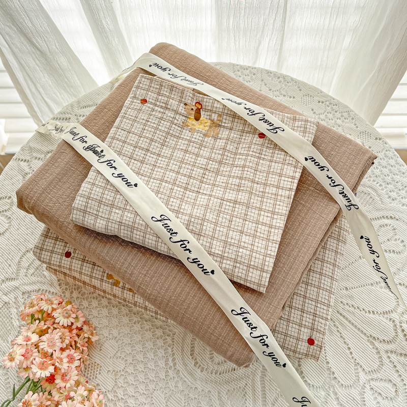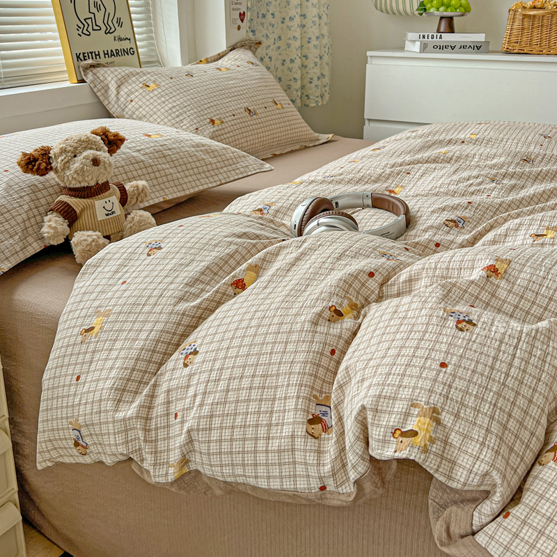 (总)一比一家纺 2026新款古法水洗仿棉云感纱A类四件套,知秋,白兰地,彩波波,草莓点点,格纹狗,嗨皮狗,赫莲娜,花千朵,花絮,酱果,蓝小格,莉莉安,梦幻灰,南瓜果果,葡萄,浅梦,森屿,疏影,甜心草莓,甜心喵,条纹狗,童趣,小黄花,小木马,小时光,小幸运,修修狗,薰衣草,灰樱桃,樱桃熊,鱼多多,组合图仅做展示不可下单