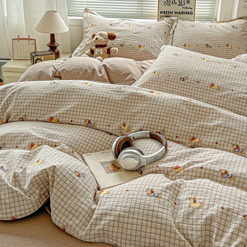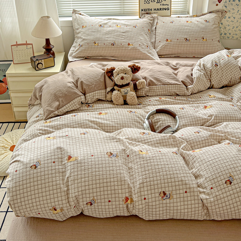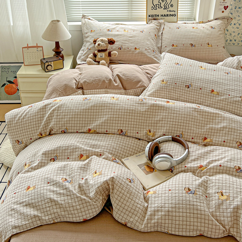 一比一 2025新款古法水洗棉小布袋高克重云柔棉四件套 腊肠狗咖