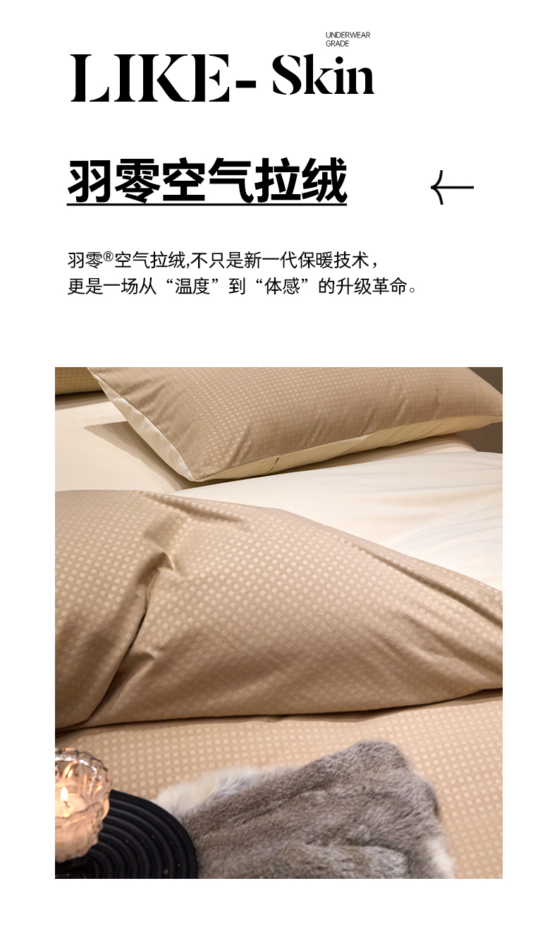 商品名称:金奇达家纺 2025新款【简色生活】热压纹-羽零™空气拉绒四件套(会员减20元)标准号全网控价(折后券后)不低于159元 简色生活-绿茶