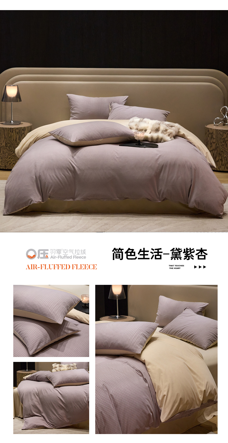 (总)金奇达家纺 2025保暖新款羽零™空气拉绒加厚荷叶边四件套热压纹【香榭丽织梦】 (会员减45元)全网控价标准号(折后券后)不低于199元,香榭丽织梦-浅紫,香榭丽织梦-温玉,香榭丽织梦-杏色,香榭丽织梦-珍珠白