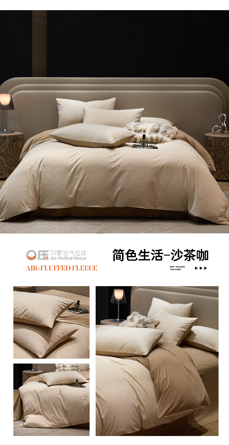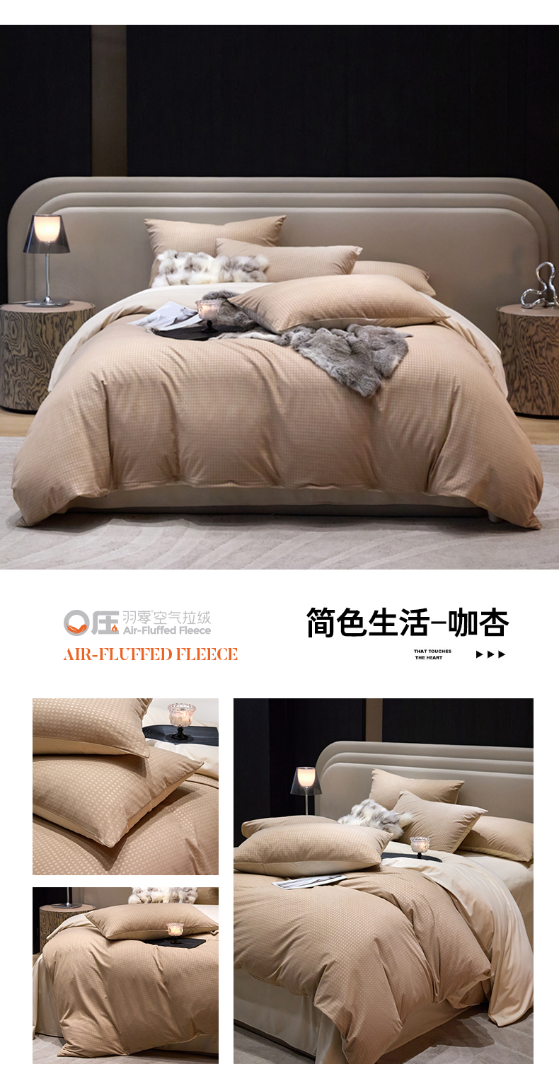 (总)金奇达家纺 2025新款【鎏金谧镜】鎏金系列-羽零™空气拉绒四件套(会员减35元),鎏金谧境-贝卡杏,鎏金谧境-迷雾灰,鎏金谧境-鸢尾蓝,鎏金谧境-浅驼,鎏金谧境-摩卡棕,鎏金谧境-黑曜石