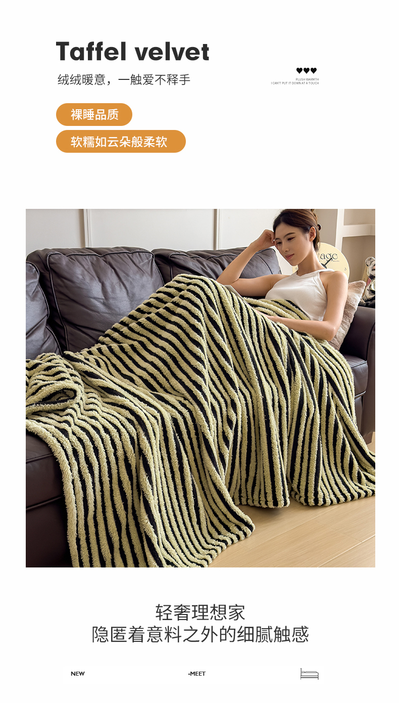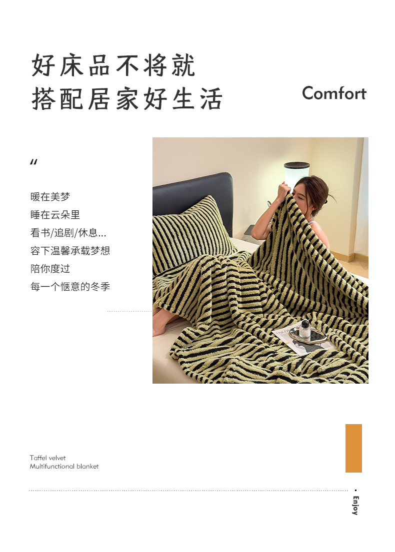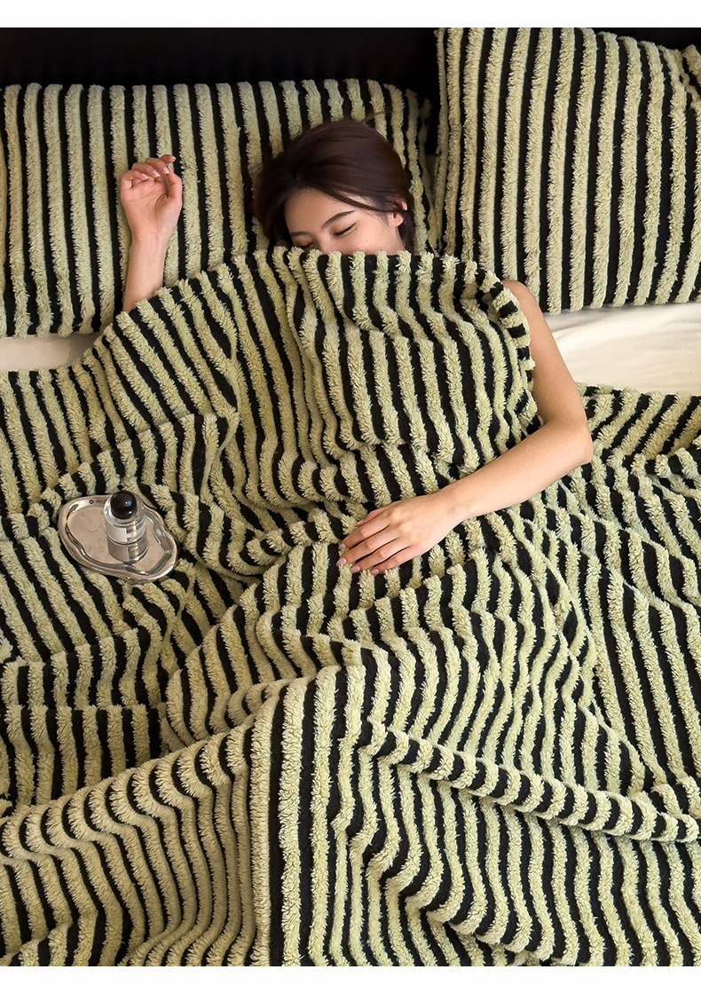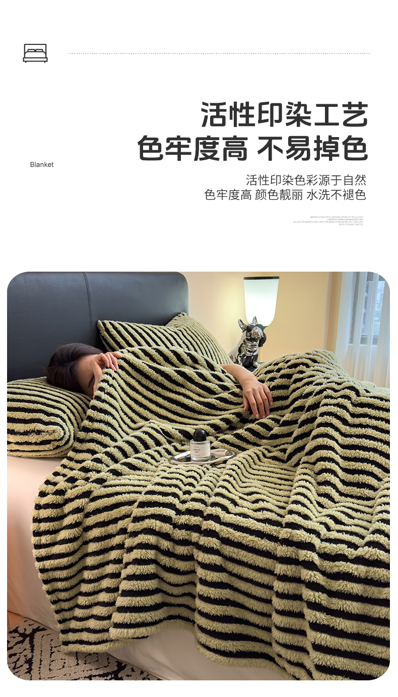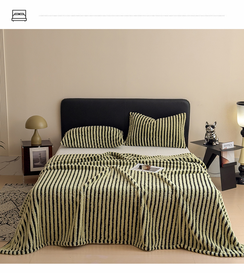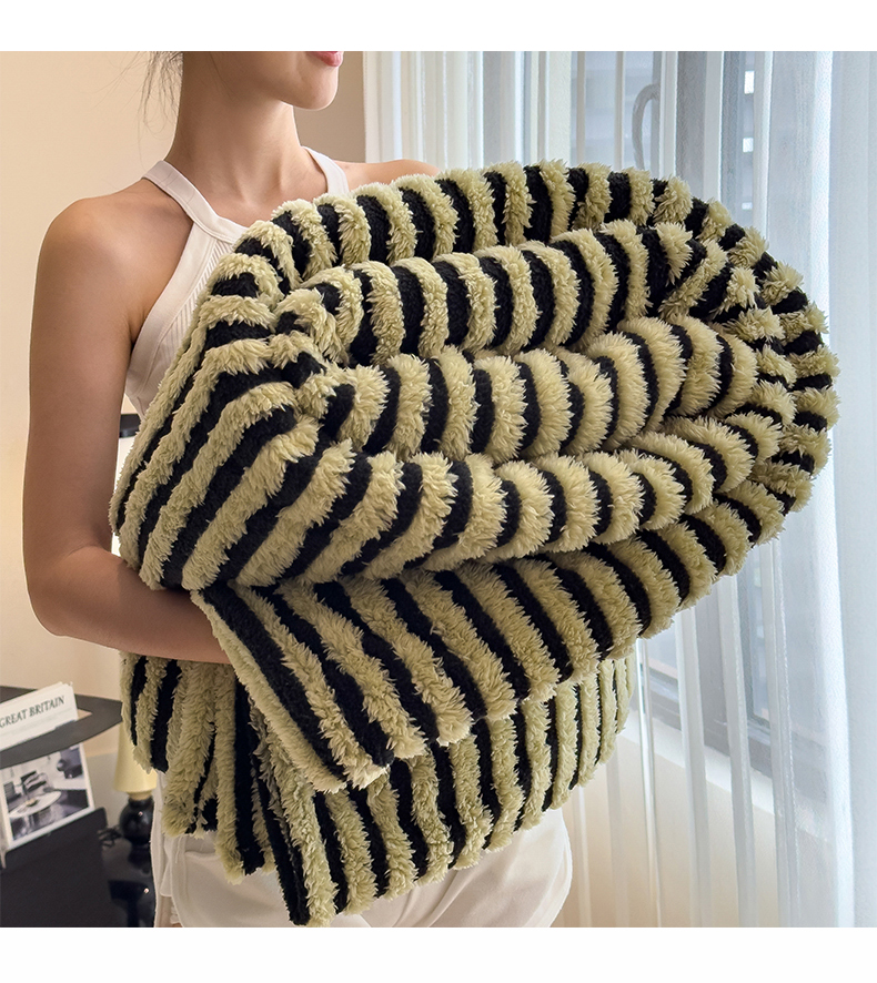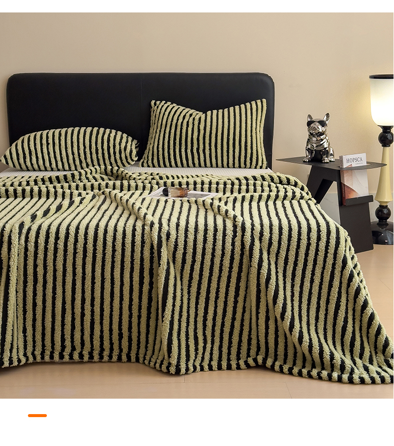 商品名称:世纪绒品 2025新款A类牛奶绒提花极光系列毛毯盖毯毯子 极光-黑绿条