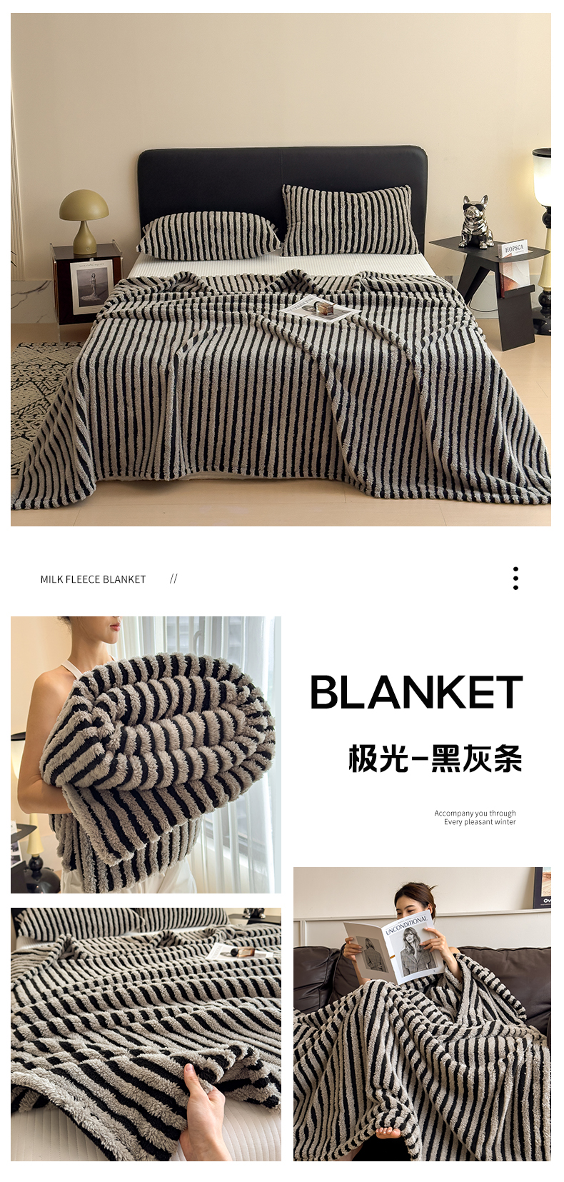 (总)世纪绒品 2025新款A类牛奶绒提花极光系列毛毯盖毯毯子,组合图仅供展示不可下单,极光-黑灰条,极光-黑咖条,极光-黑蓝条,极光-黑绿条,极光-黑白条