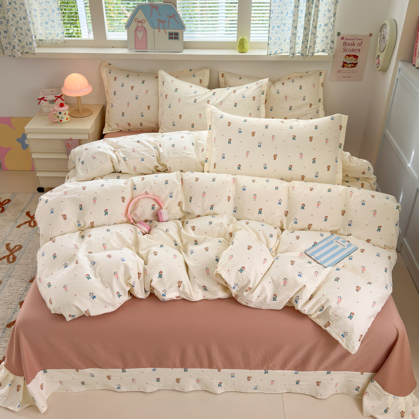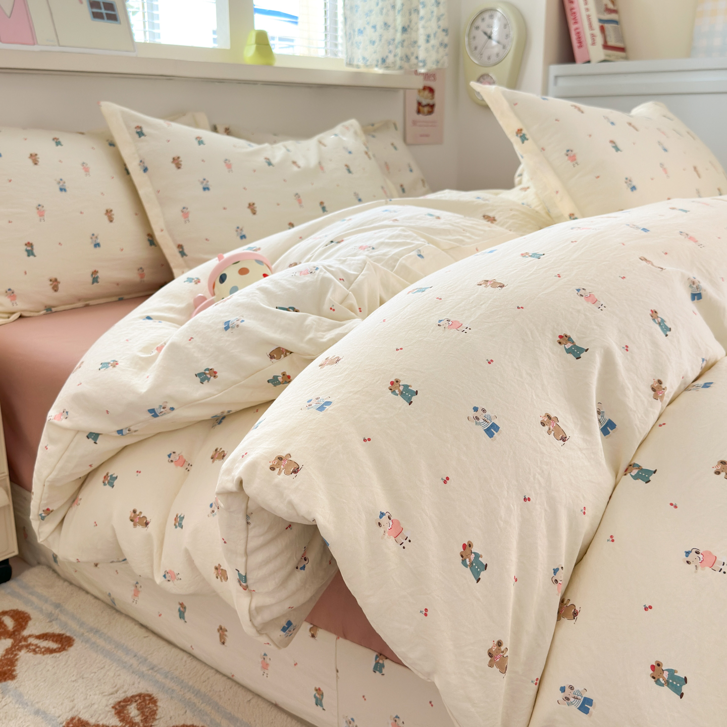 德比尔斯 2025新款爆款韩国小布袋古法水洗棉云感棉四件套 快乐小象
