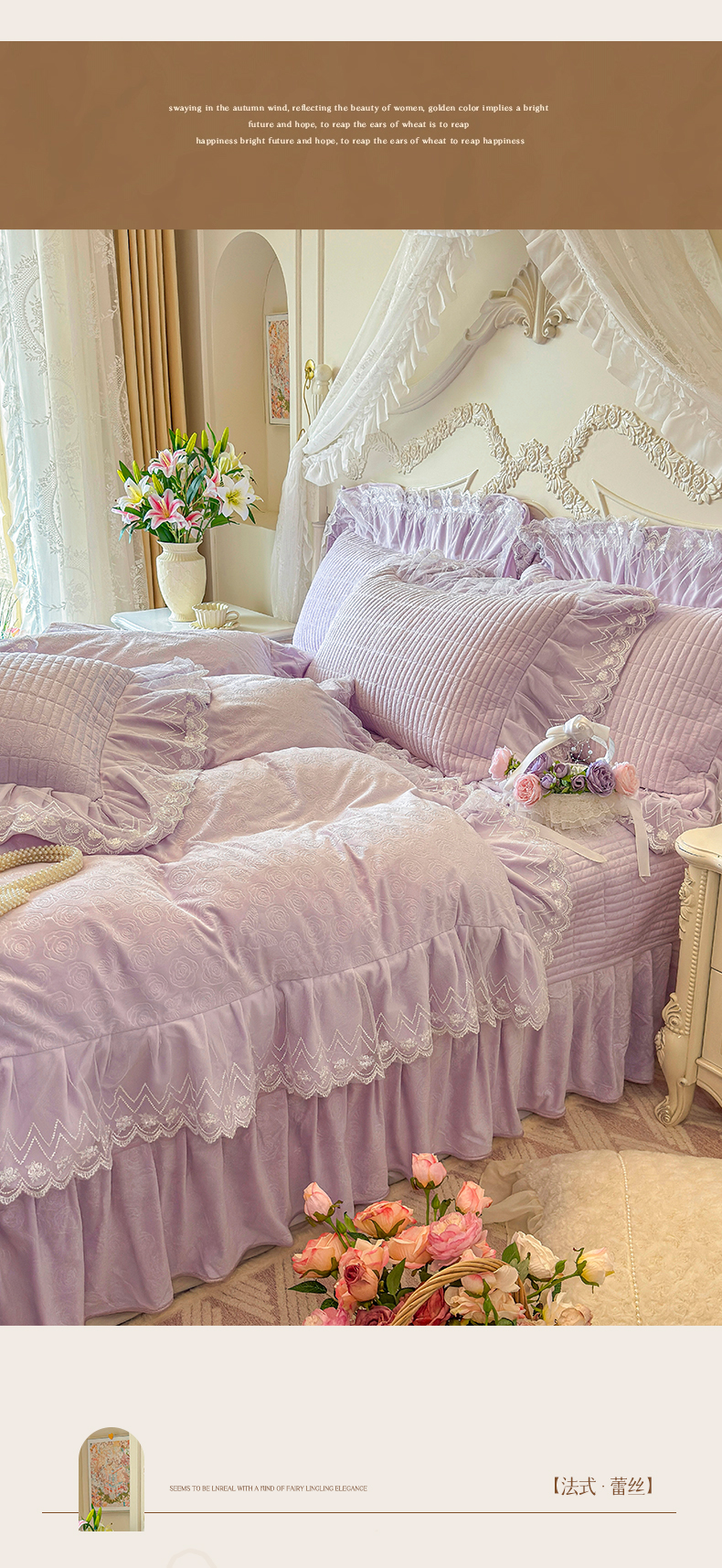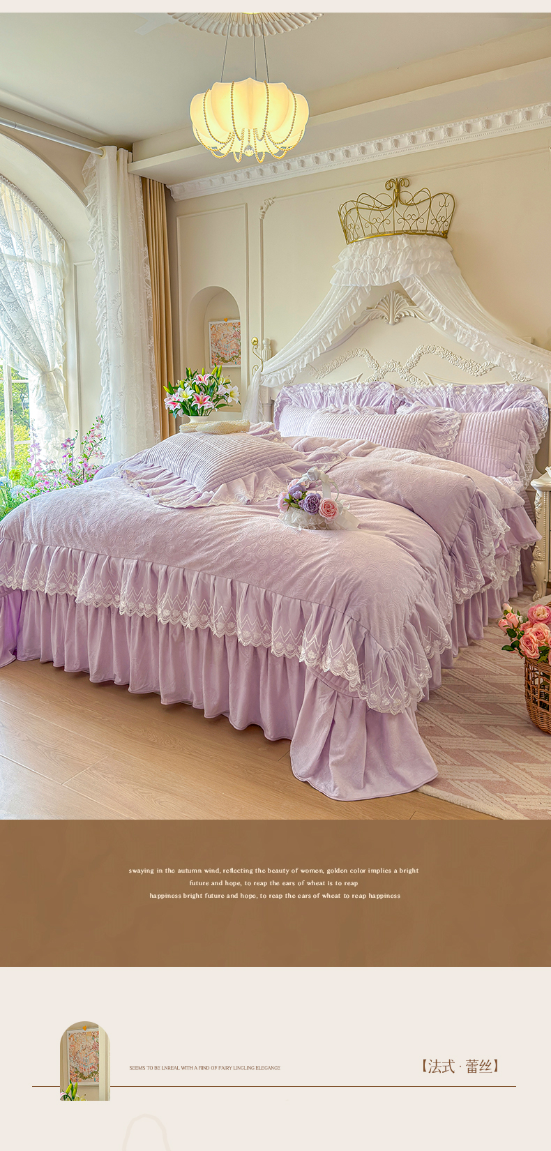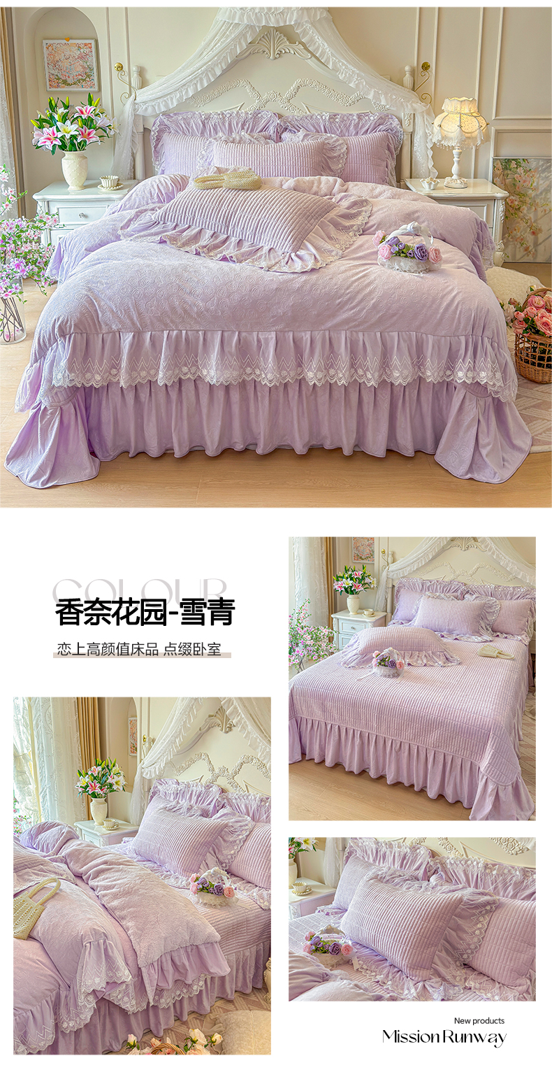 (总)宜凡家纺 2025新款兔绒提花牛奶绒夹棉床裙四件套,爱心 少女粉,爱心 粉紫,爱心 驼色,蝶舞 大红,蝶舞 米色,蝶舞 浅紫,蝶舞 玉色,简爱 苍青,简爱 豆沙紫,简爱 玉色,樱桃 苍青,樱桃 豆沙紫,樱桃 奶油白