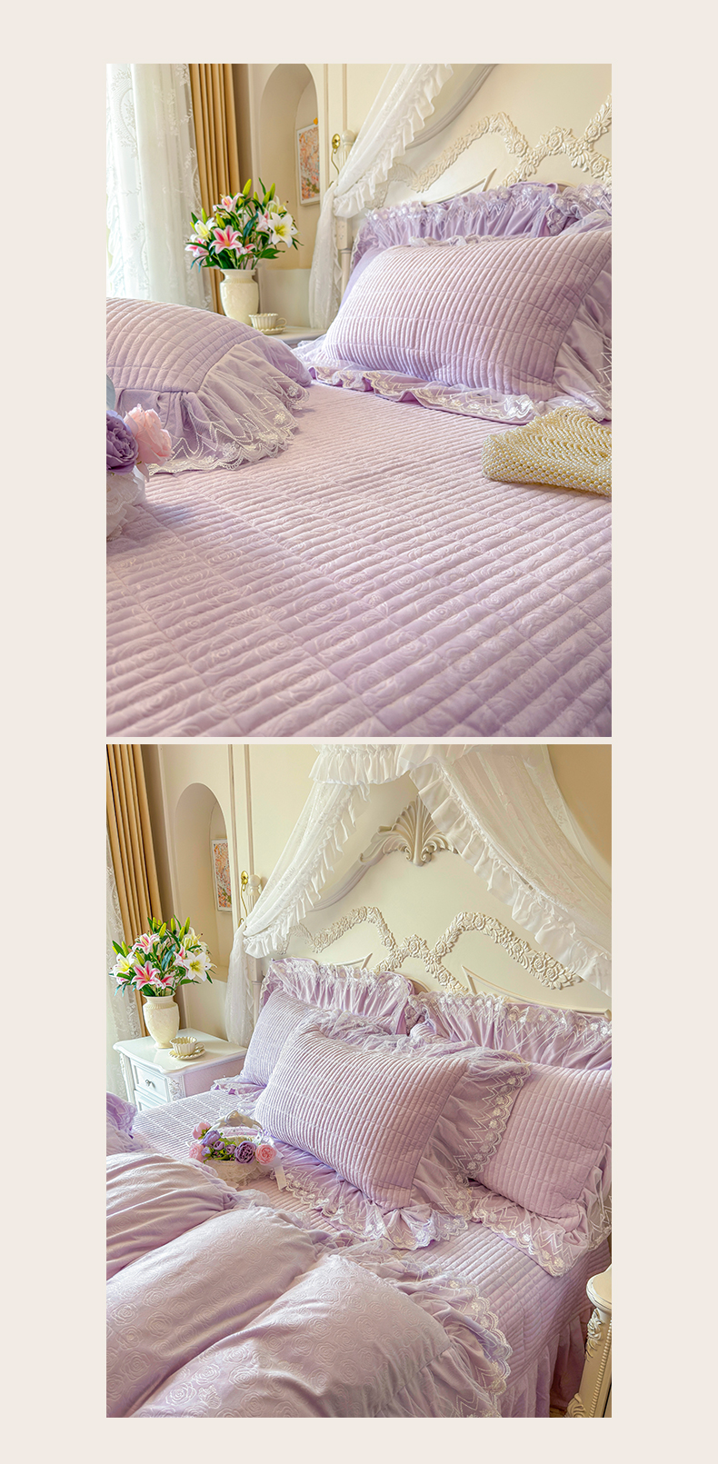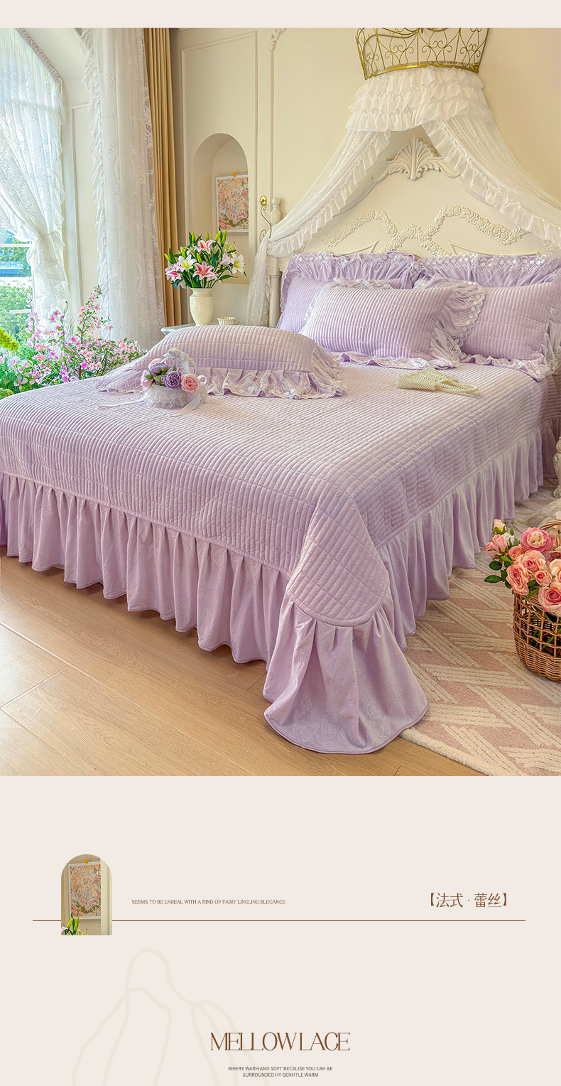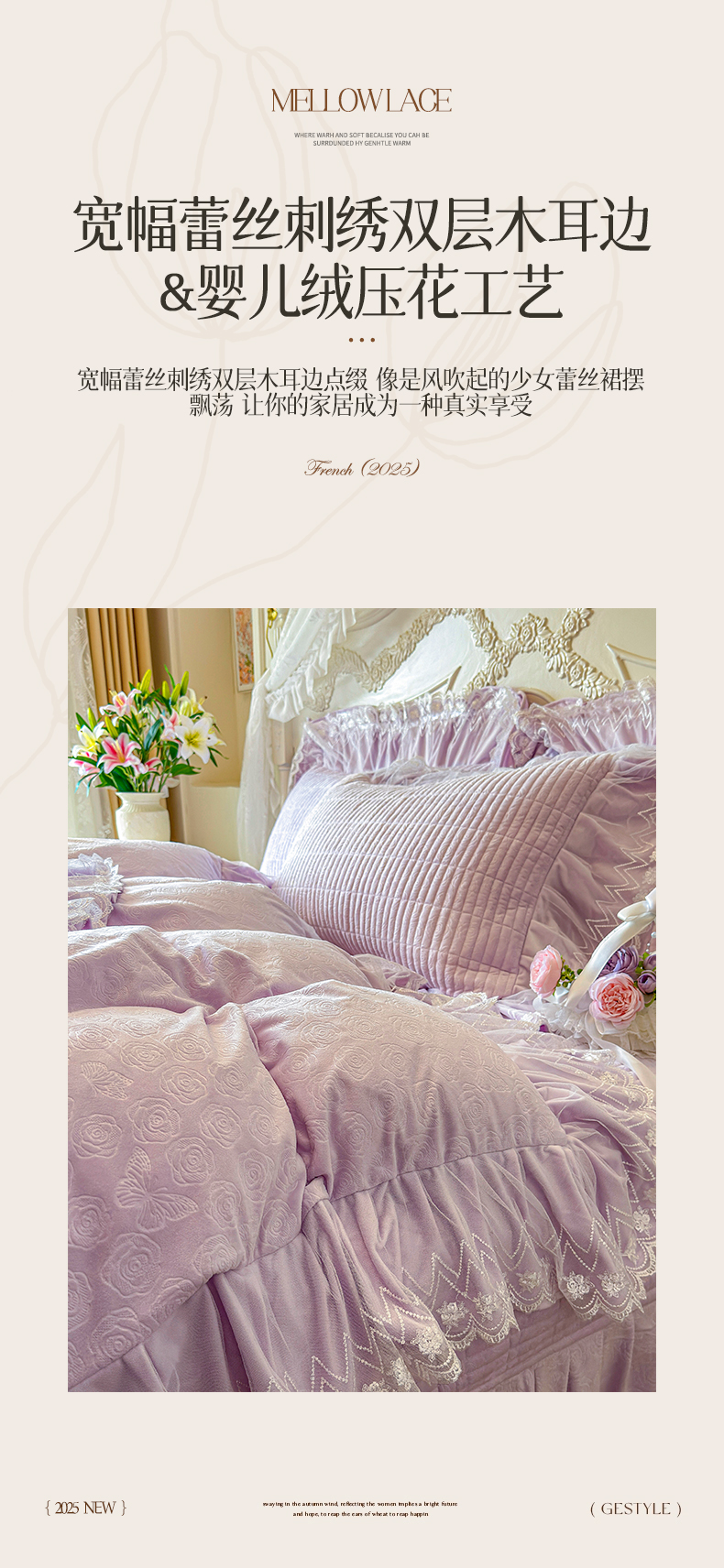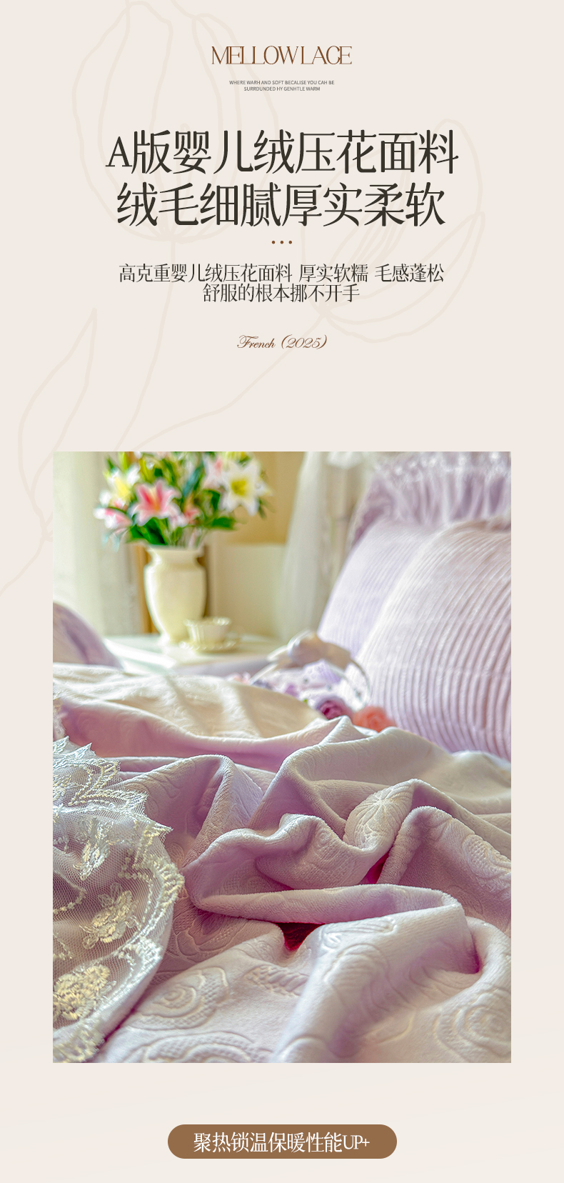 宜凡家纺 2025新款婴儿绒压花夹棉床盖四件套-香奈花园 香奈花园-雪青