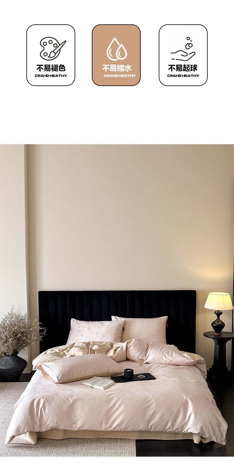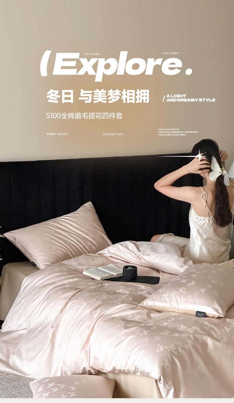 商品名称:三味舒屋 2025新款素织静奢系列50支全棉提花磨毛四件套 贝妮粉