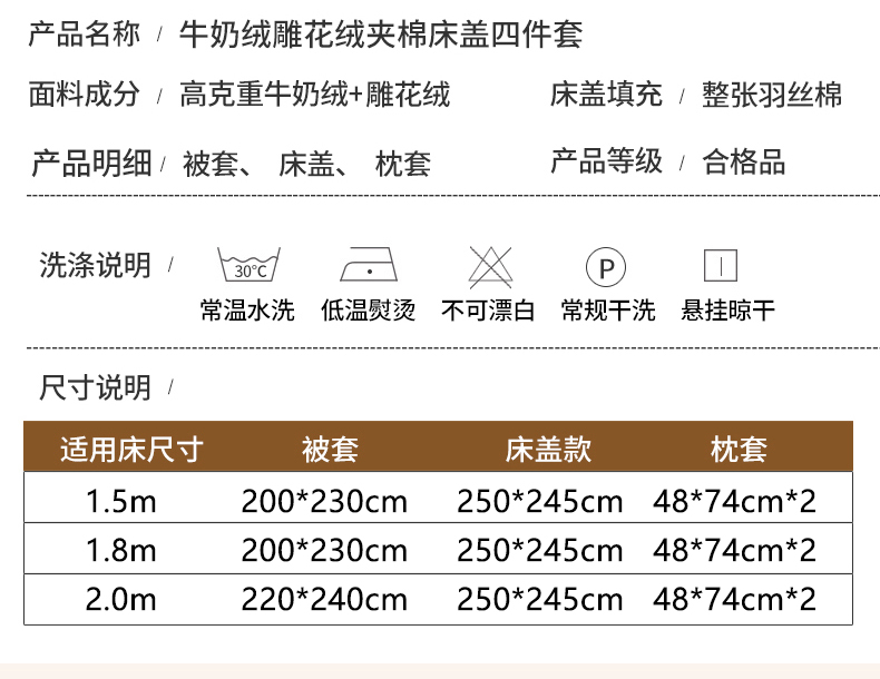 商品名称:美梦家纺 2025新款雕花牛奶绒夹棉床盖四件套 花朝梦-粉