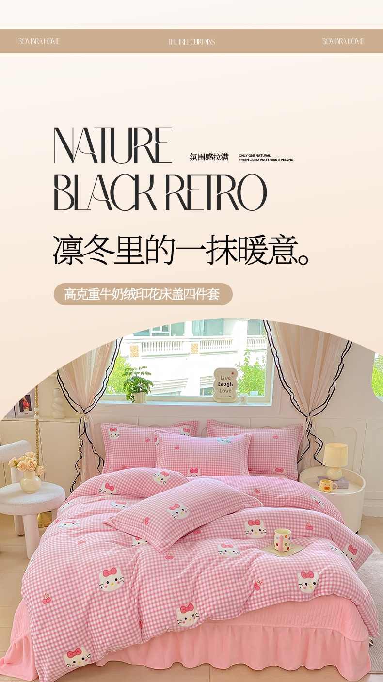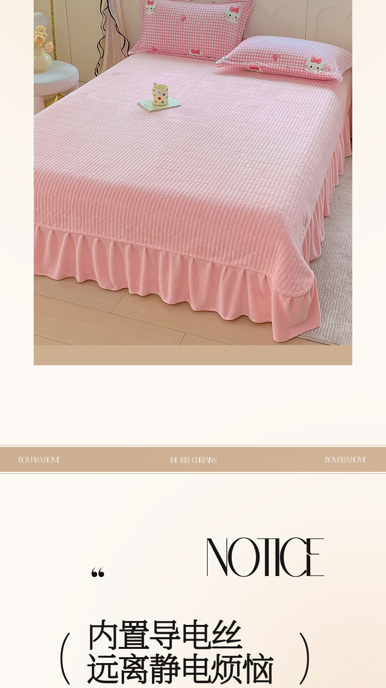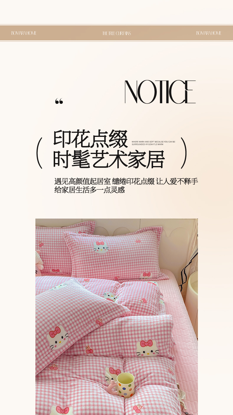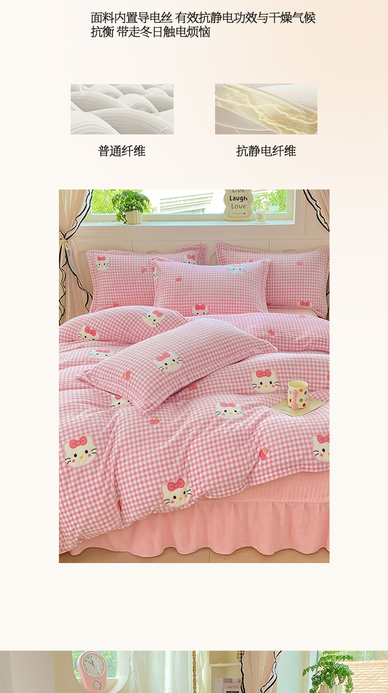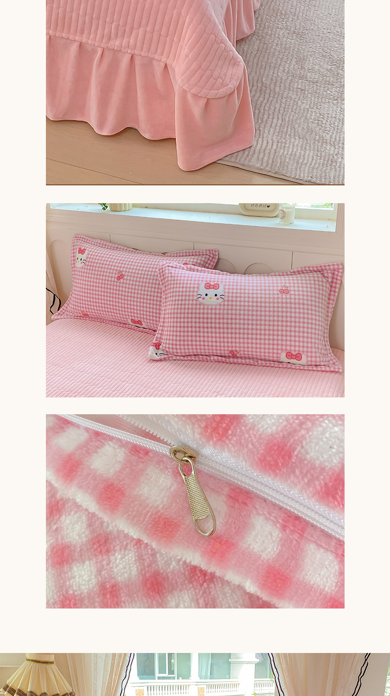 商品名称:豫见家纺 2025新款高克重牛奶绒夹棉床盖四件套 甜心凯蒂-粉