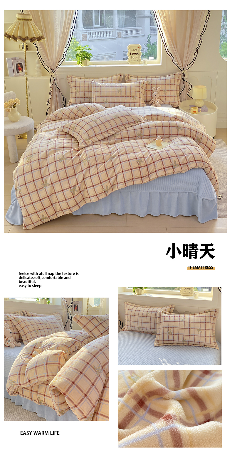 (总)豫见家纺 2025新款高克重牛奶绒夹棉床盖四件套,花簇,爱如星辰,安妮熊,豹纹粉,豹纹蓝,豹纹棕,波点蝴蝶结,波点时代-白,波点时代-紫,彩虹蝴蝶结,彩虹糖,草莓粉兔,粉格蝶韵,复古心悦,花园邂逅,花韵玫瑰,灰调爱恋,恐龙派对,蓝格蝶韵,罗格先生,玫瑰物语,梦幻大耳狗,茉香,木松花,淘气兔,田园幻梦,甜心凯蒂-粉,甜心凯蒂-蓝,甜心凯蒂-棕,条纹蝴蝶结,小玫瑰,小南瓜粉,小南瓜蓝,小蔷薇,小晴天,新潮风尚,熊猫乐园,熊猫乐园-粉,英伦格调,樱桃心愿