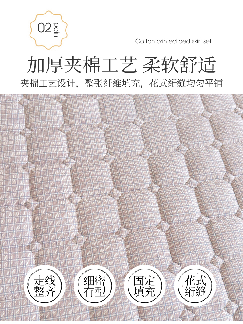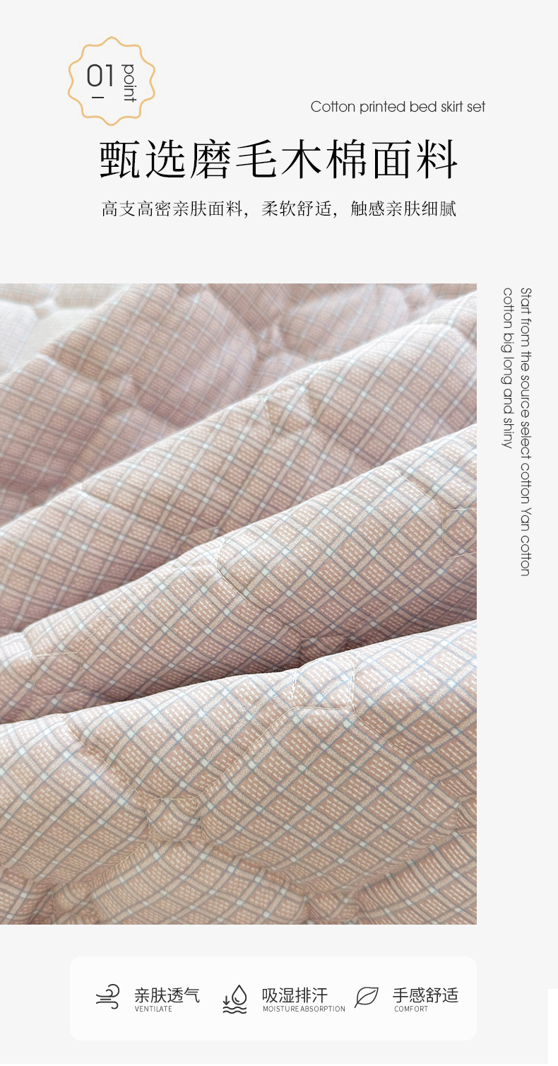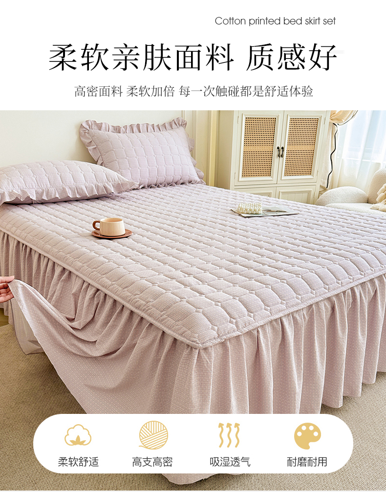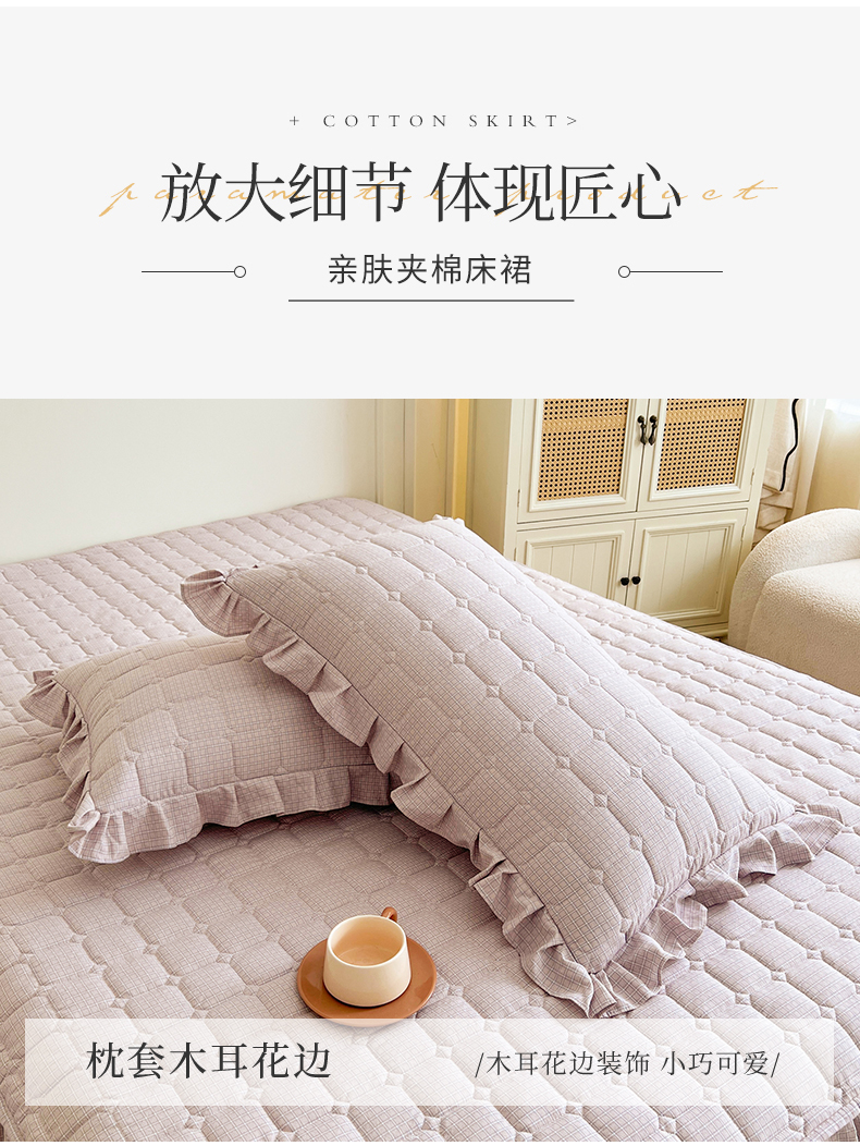 商品名称:十个点家纺 2025新款加厚磨毛木棉床裙三件套-格小格系列 格小格-玉