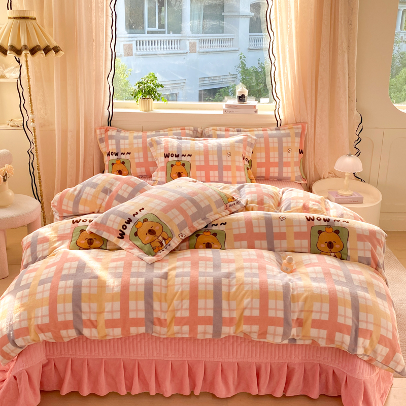 (总)富之航家纺 2025秋冬新款牛奶绒印花床盖四件套,豹纹咖,粉红结,公主城堡,花间梦,花栖礼,花妖,欢乐恐龙,结缘派对,快乐小女孩,满心欢喜,甜蜜樱桃,甜心,小格熊,幸运猫咪,幸运时光,织梦空间