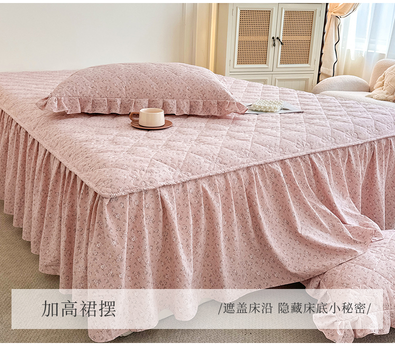 商品名称:(总)十个点家纺 2025新款加厚磨毛木棉床裙三件套-绫罗系列