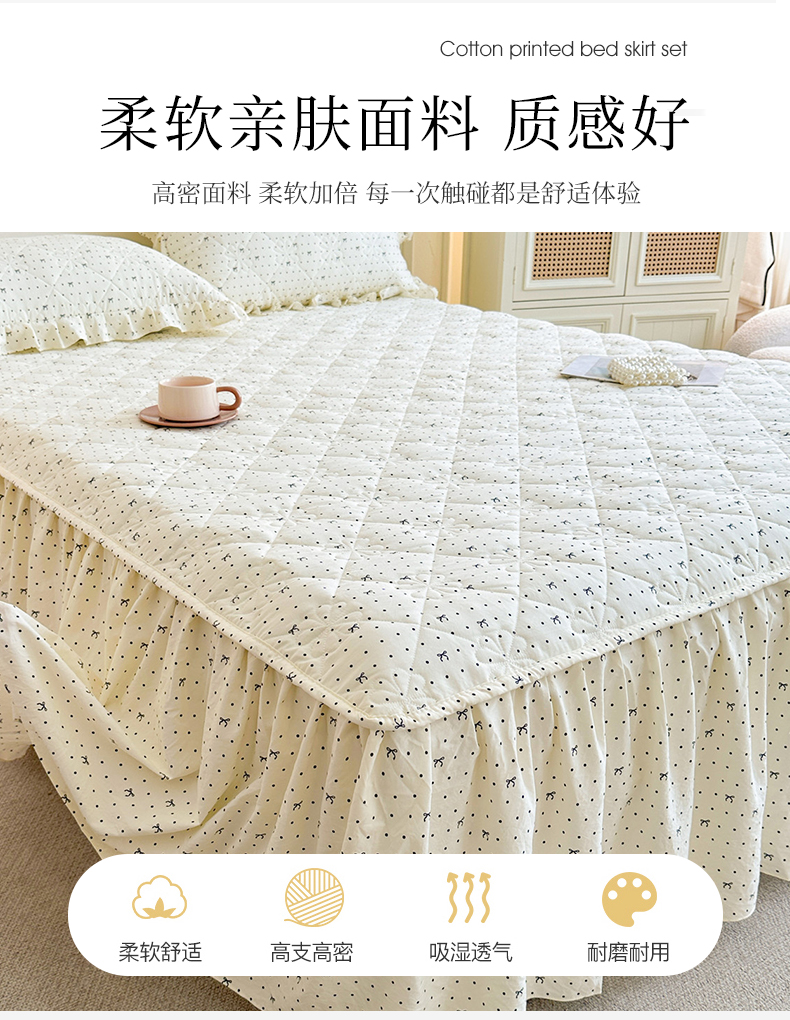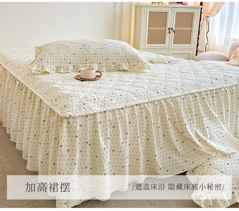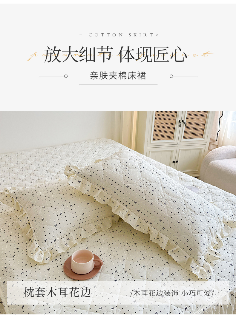 商品名称:十个点家纺 2025新款加厚磨毛木棉床裙三件套-绫罗系列 同心结