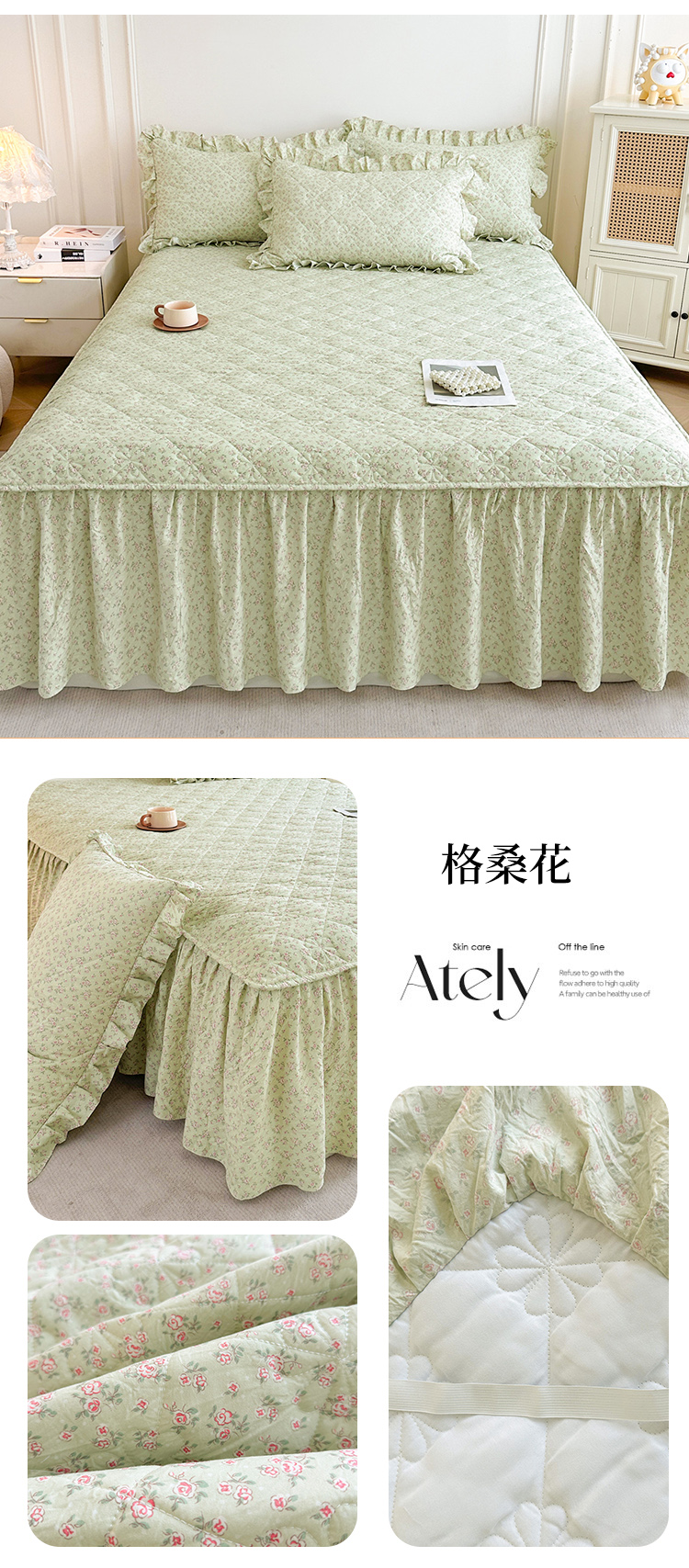 (总)十个点家纺 2025新款加厚磨毛木棉床裙三件套-格小格系列,格小格-粉,格小格-金驼,格小格-咖,格小格-兰,格小格-绿,格小格-玉