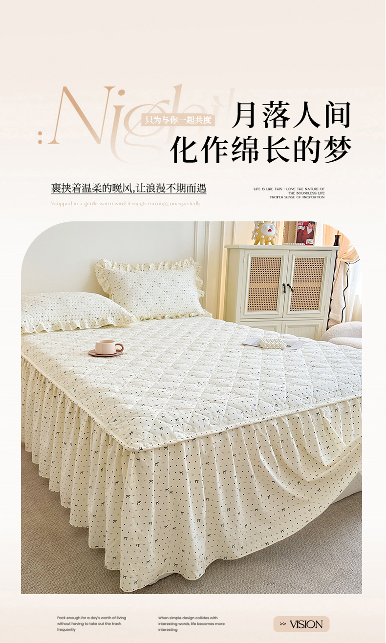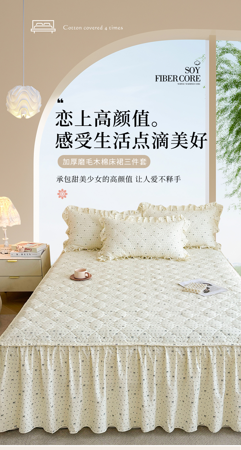 (总)十个点家纺 2025新款加厚磨毛木棉床裙三件套-绫罗系列,爱意萌萌,贝贝熊,格桑花,海棠花,蝴蝶兔,花千骨,米兰,木棉花,山茶花,同心结,心相印,心愿-米