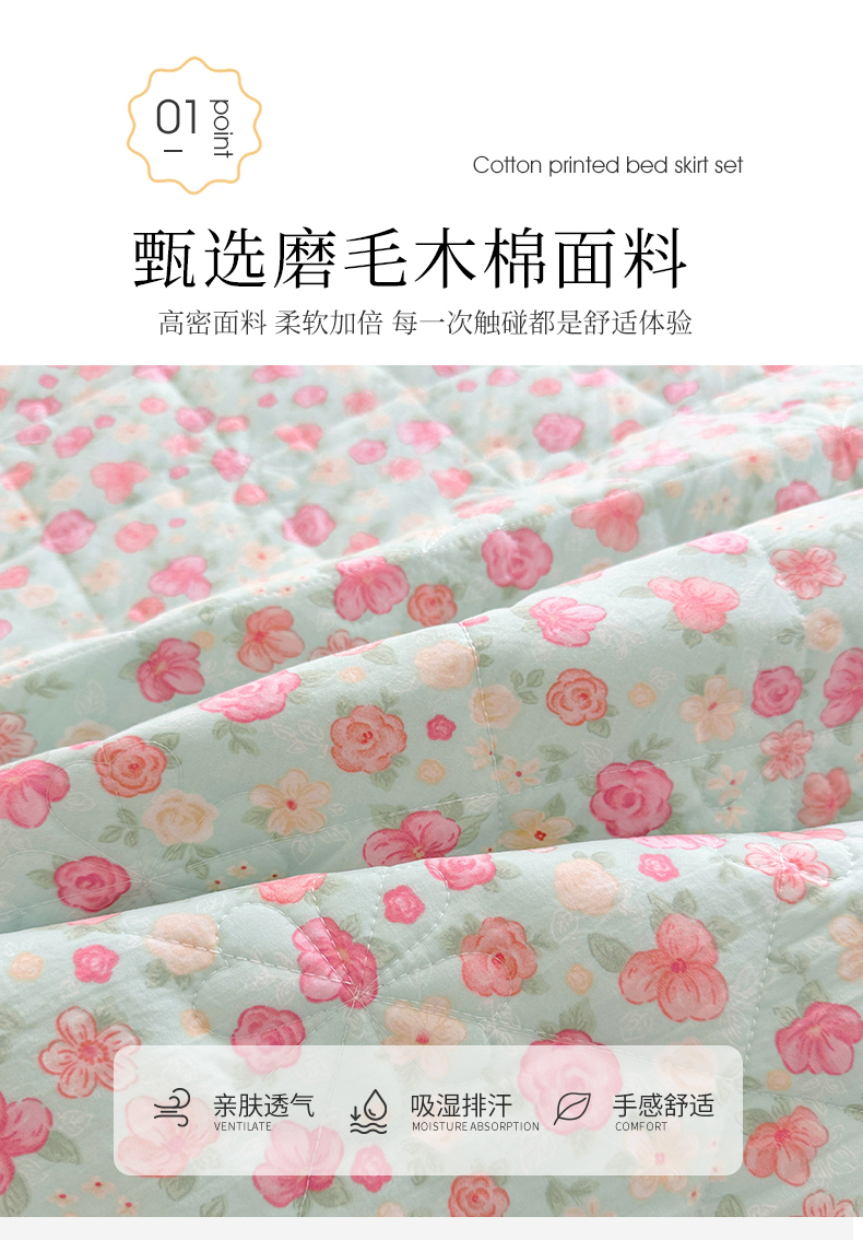 (总)十个点家纺 2025新款加厚磨毛木棉床裙三件套-绫罗系列,爱意萌萌,贝贝熊,格桑花,海棠花,蝴蝶兔,花千骨,米兰,木棉花,山茶花,同心结,心相印,心愿-米