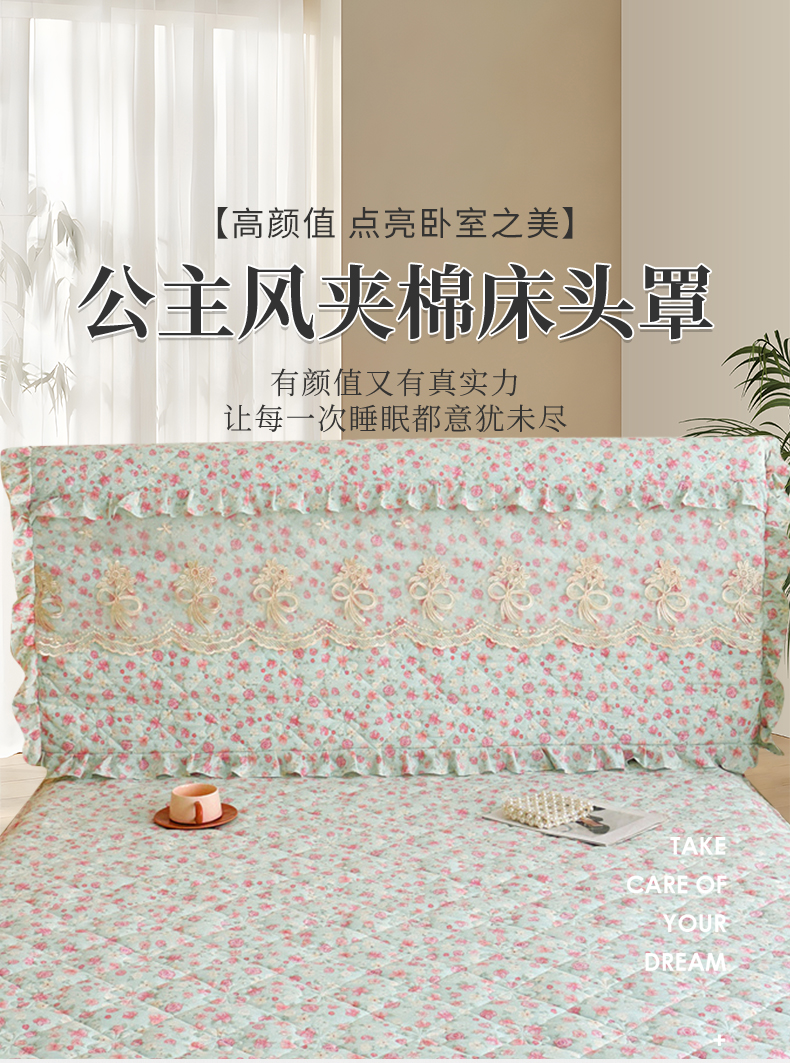 (总)十个点家纺 2025新款公主风夹棉床头罩-绫罗系列,爱意萌萌,贝贝熊,格桑花,海棠花,蝴蝶兔,花千骨,米兰,木棉花,山茶花,同心结,心相印,心愿-米