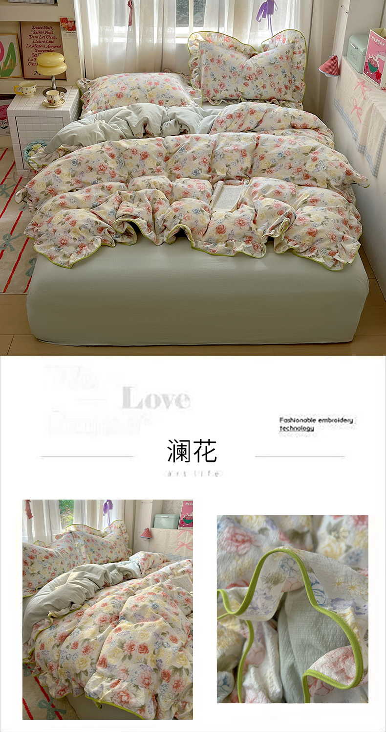 当前位置: 91家纺网 > 商品网购 > 床品套件 > 四件套 > 其它四件套 > 春光里 2025新款亲肤舒适云感双层纱花边四件套 风格二(提供买家秀) 莹光