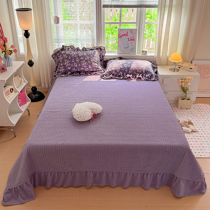 (总)梦莱斯2025新款皱皱棉学生款床盖三件套,波点粉,波点黄,波点咖,波点蓝,波点紫,法式少女,花海绿,简夕米,蓝格子,罗格先生咖,罗格先生蓝,迷你格灰,迷你格米,珊瑚海粉,水墨嫣然,往事黄,往事咖,至尚