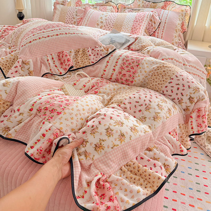 (总)梦莱斯 2025新款加厚保暖双面牛奶绒四件套-黑色花边款,爱丽丝花园,爱心点点,暗香,布偶兔兔,彩虹波点,春不晚,蝶舞,繁花,粉红蝴蝶结,粉色猫,格子爱心咖,格子猫,格子樱桃,黑巧樱桃,黑糖珍珠,蝴蝶结,花里梦,快乐女孩,玫瑰之约 - 白,玫瑰之约 - 黑,米亚,桃之夭夭,心动-灰,心动-紫,紫花萌境