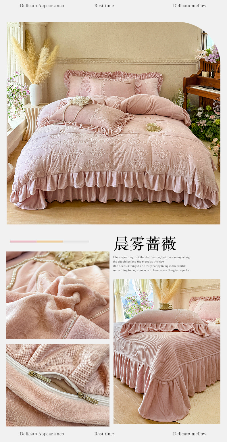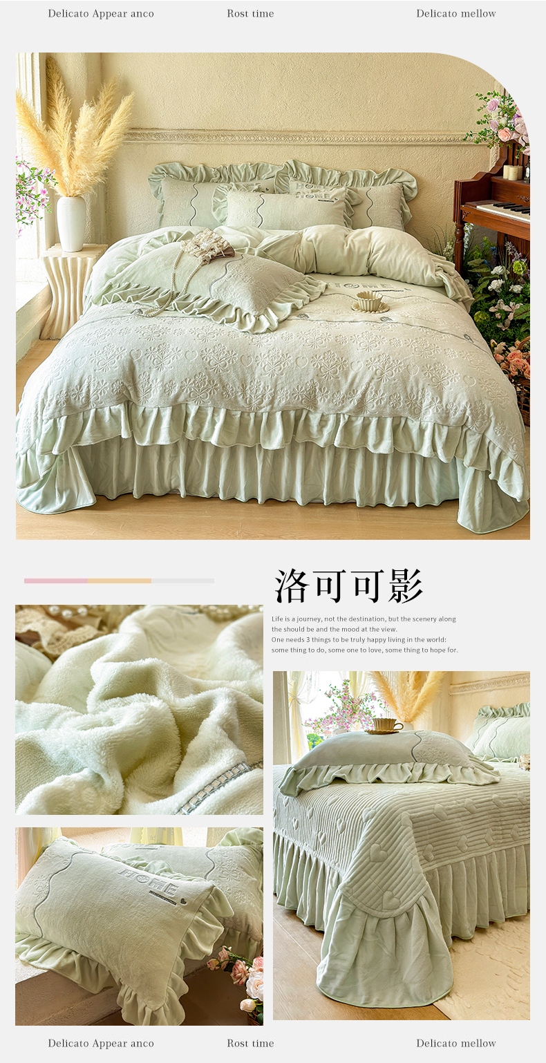 (总)宜凡家纺 2025新款兔绒提花牛奶绒夹棉床裙四件套,爱心 少女粉,爱心 粉紫,爱心 驼色,蝶舞 大红,蝶舞 米色,蝶舞 浅紫,蝶舞 玉色,简爱 苍青,简爱 豆沙紫,简爱 玉色,樱桃 苍青,樱桃 豆沙紫,樱桃 奶油白