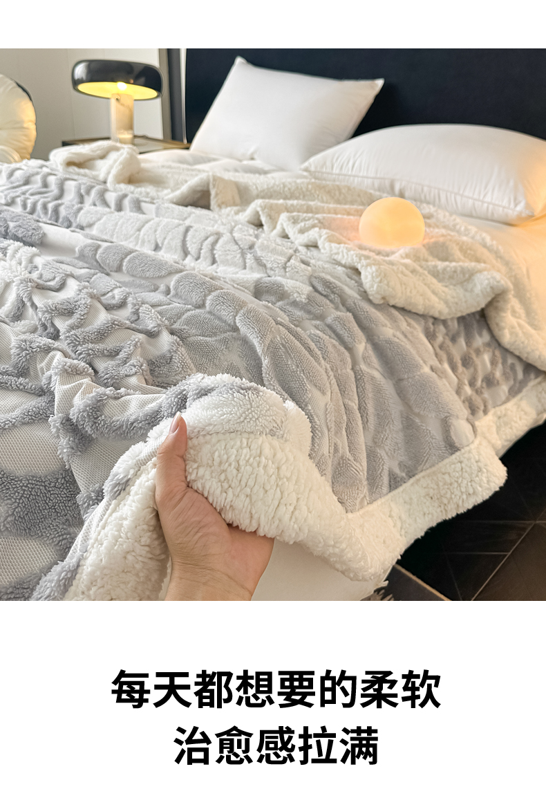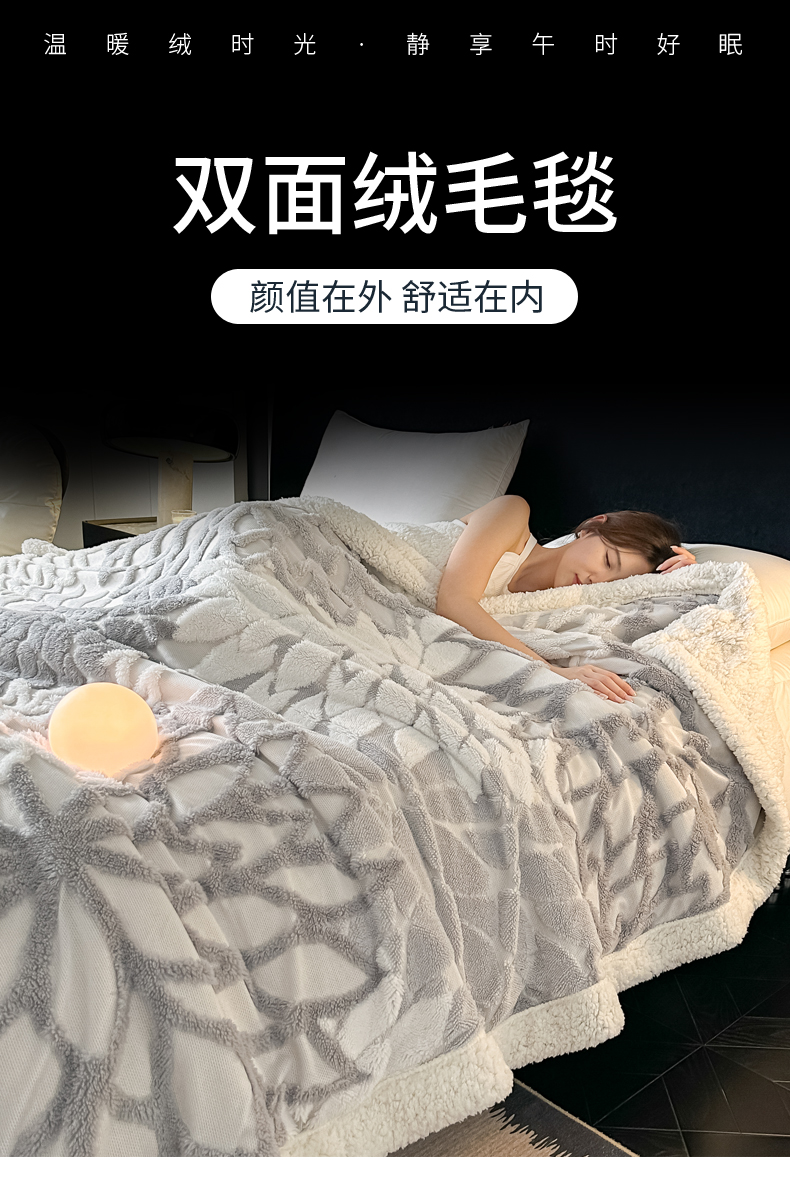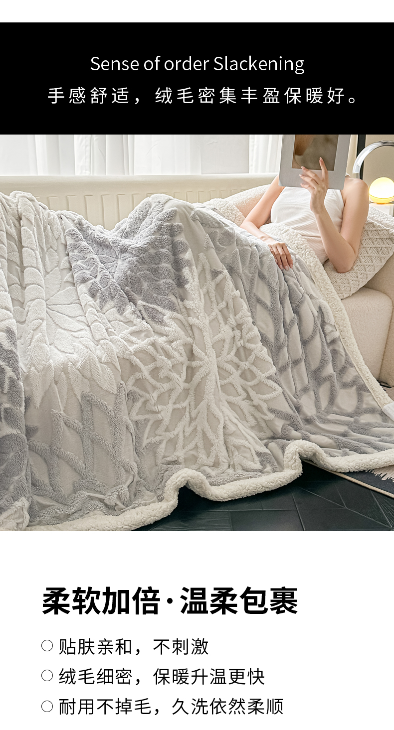 (总)丹本家纺 2025新款双层阳离子叶子提花塔芙绒羊羔绒跨境双层毛毯盖毯毯子,叶子白色,叶子粉色,叶子灰色,叶子橘色,叶子咖色,叶子驼色