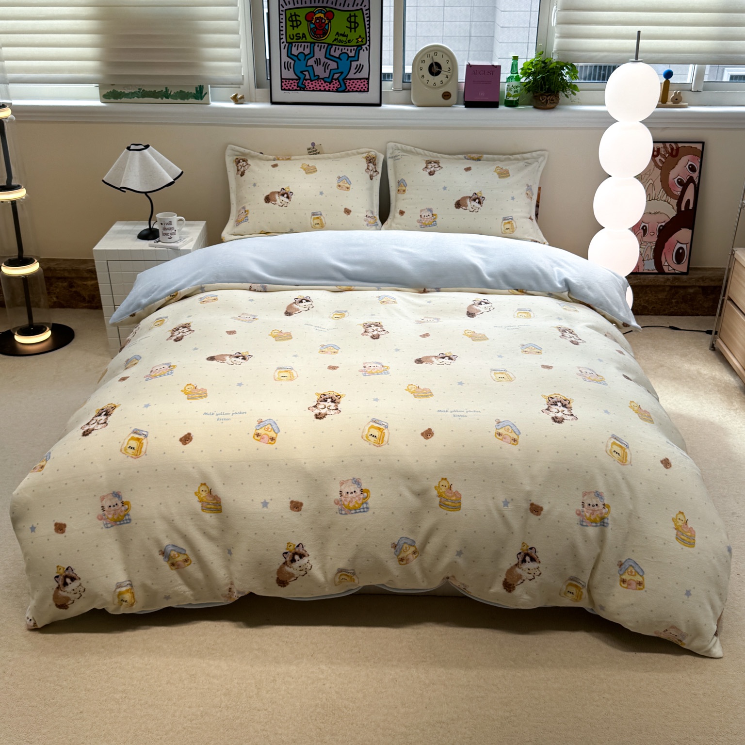 商品名称:潘朵拉 2025新款ins风牛奶绒床盖四件套 奶酪狗