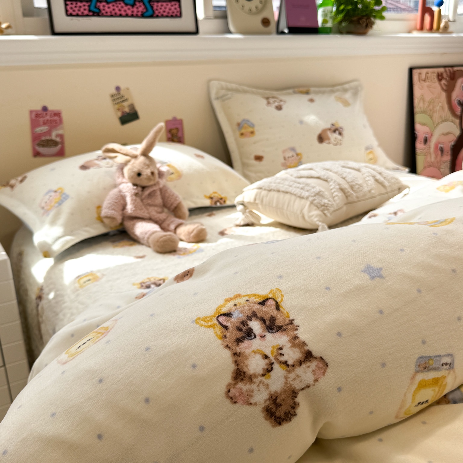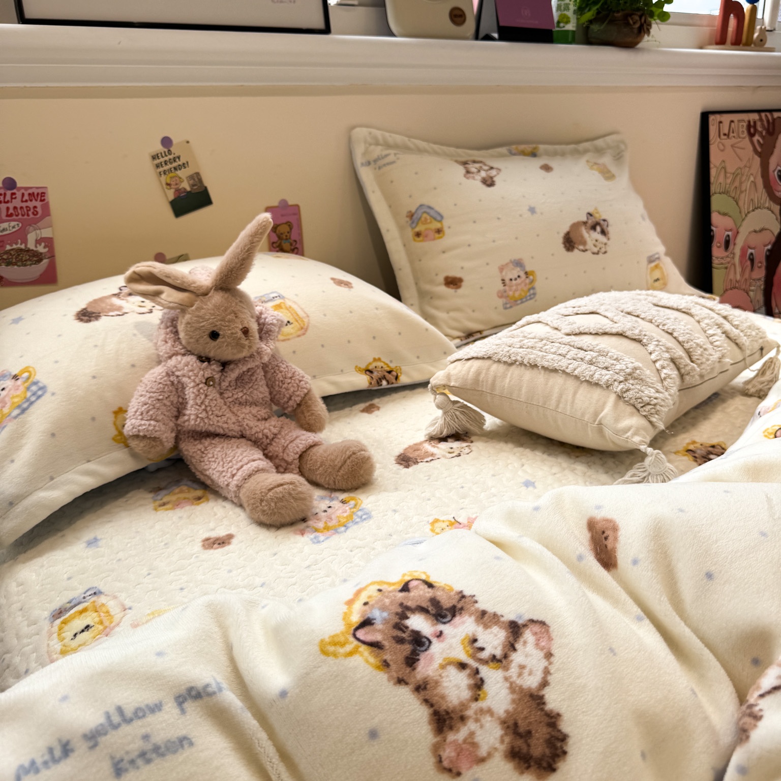 (总)潘朵拉家纺 2025新款A类牛奶绒毛巾绣系列四件套,粉格西高地,黑皮琪,甜梦喵,凯蒂酱,辣妹kt,星梦泡仔