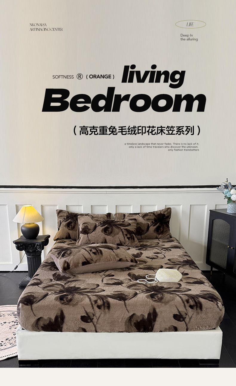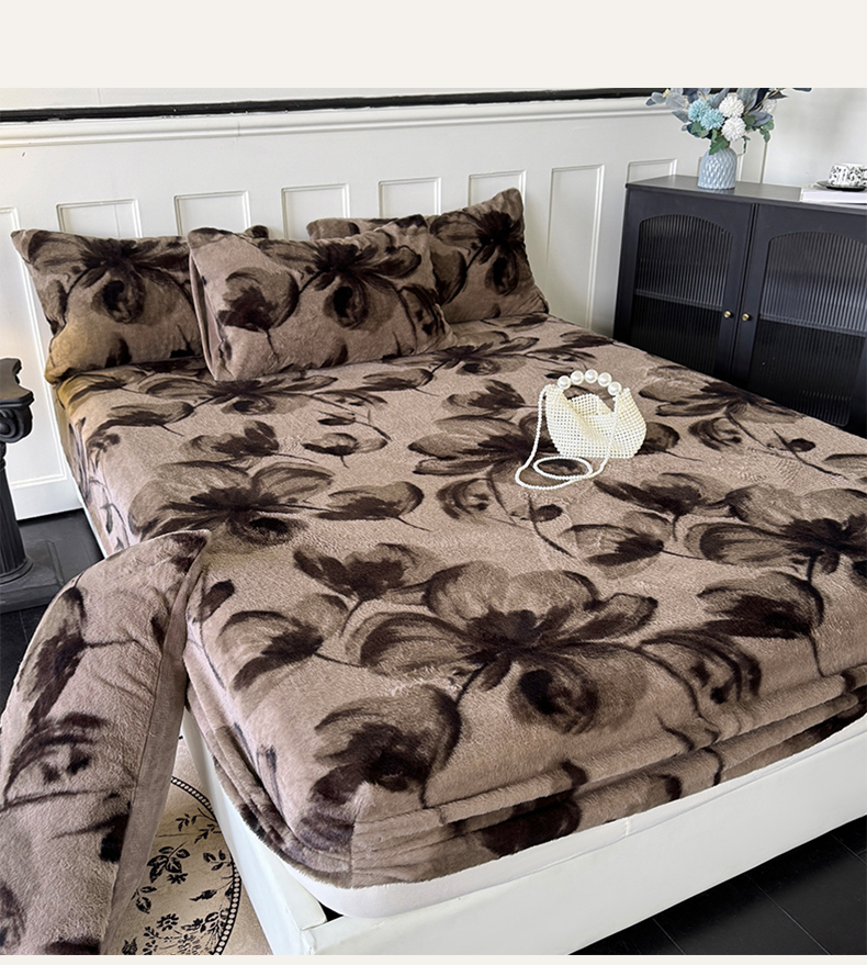 • 91家纺网 家纺一手货源 找家纺 梵克保罗 2025秋冬新款直播热卖高克重加厚轻奢法式獭兔毛绒牛奶绒美拉德风单床笠单枕套 棕野