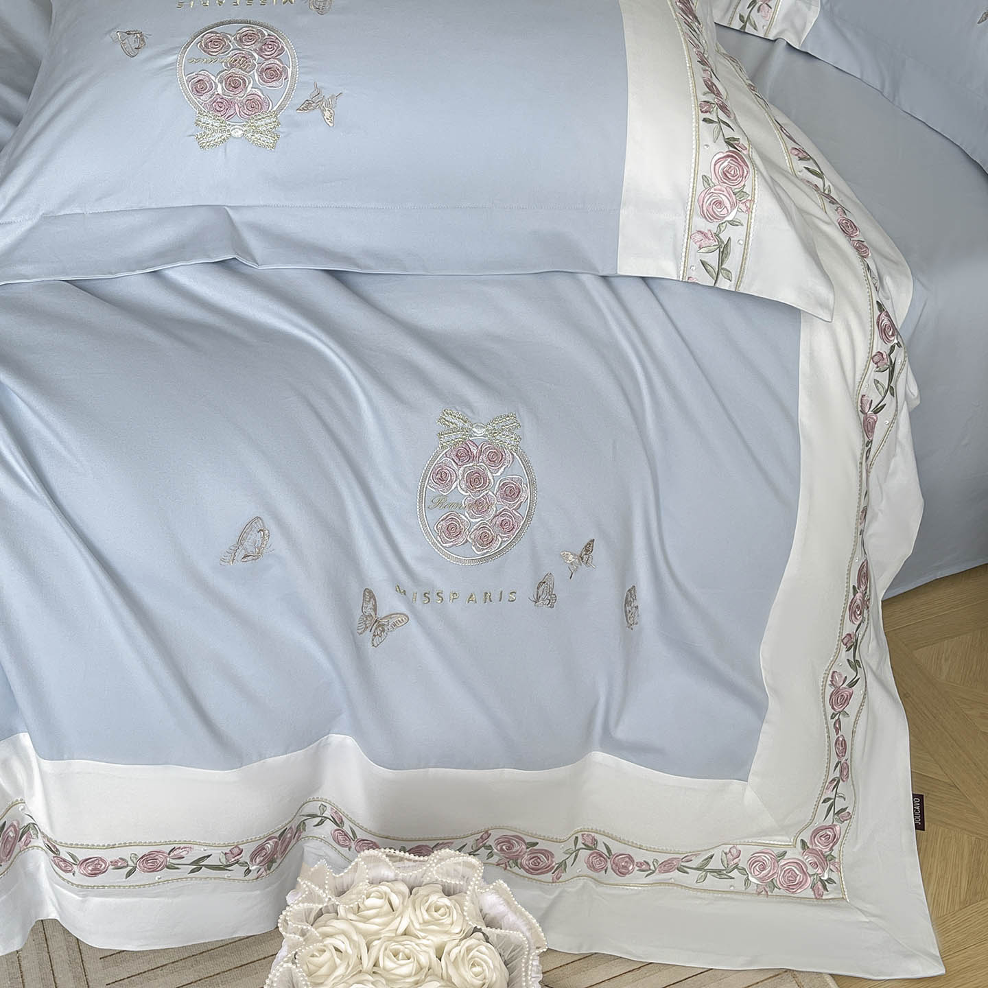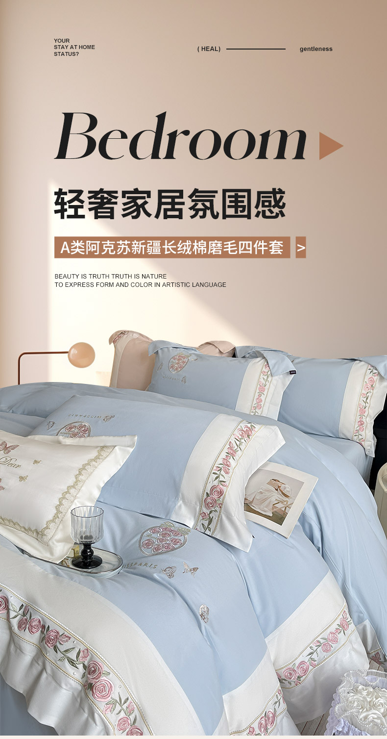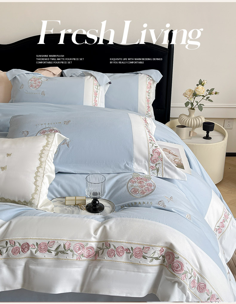 当前位置: 91家纺网 > 商品网购 > 床品套件 > 四件套 > 长绒棉四件套 > 冬季爆款A类长绒棉加厚磨毛全棉纯棉保暖高端重工刺绣全工艺被套床单轻奢床上用品 花巷-飘蓝