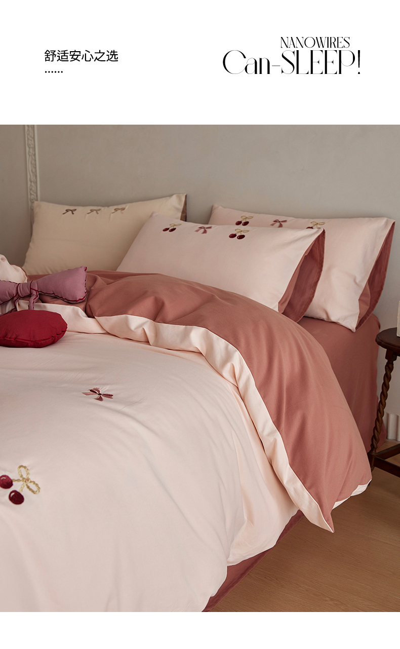 当前位置: 91家纺网 > 商品网购 > 床品套件 > 四件套 > 普通磨毛四件套 > 安莱生活 2025新款贡缎磨毛60s绣花四件套-风格一 樱桃小金链