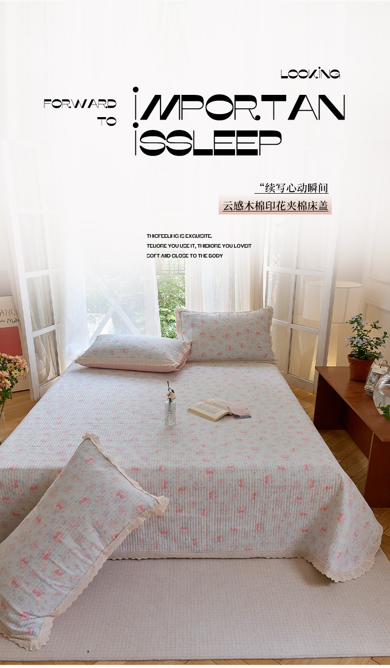 当前位置: 91家纺网 > 商品网购 > 床品套件 > 三件套 > 鑫喜莱 2025新款纯棉镂空花边云感木棉印花被套单件夹棉床盖枕套 烟雨茉冉