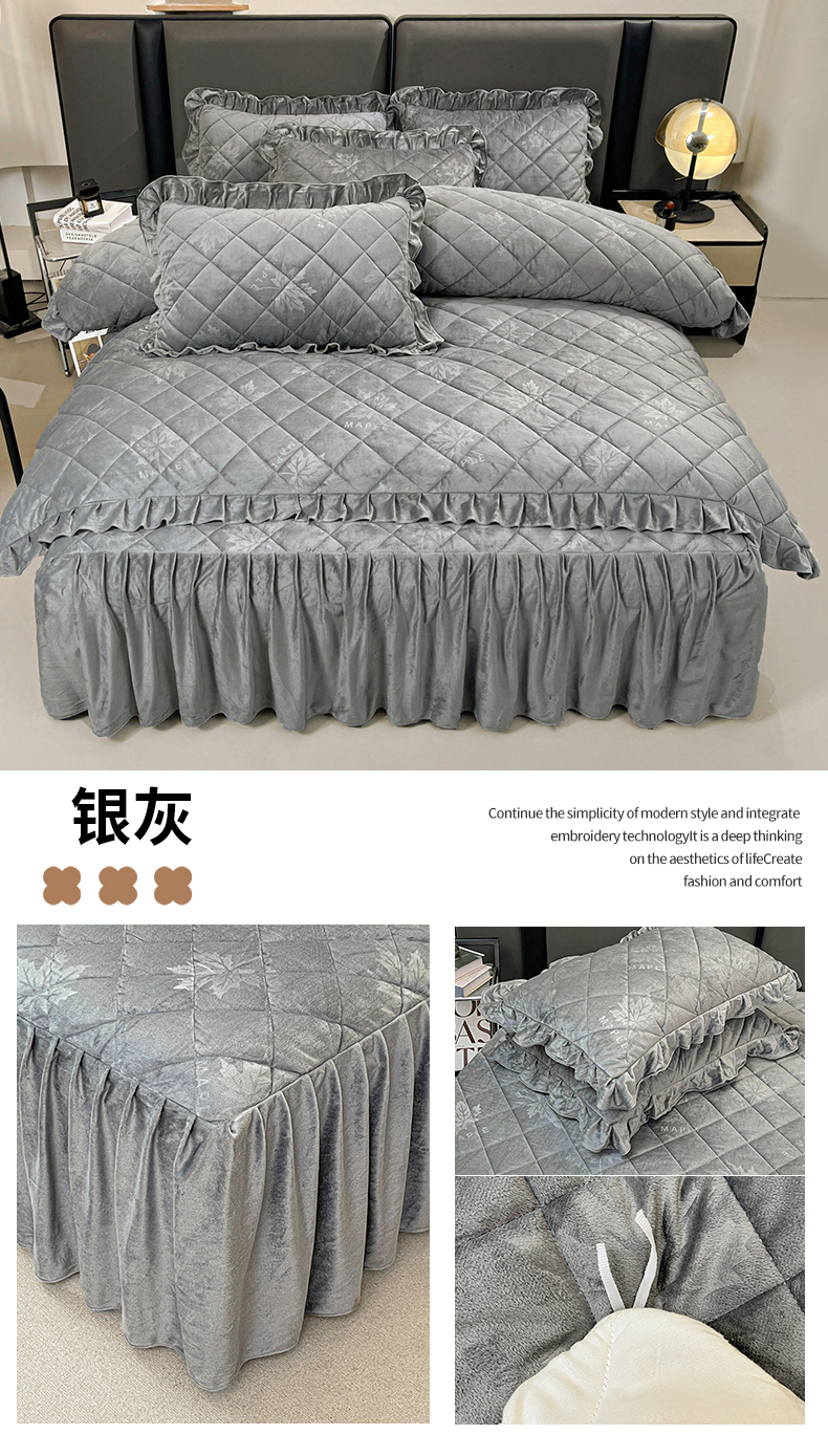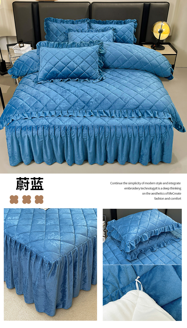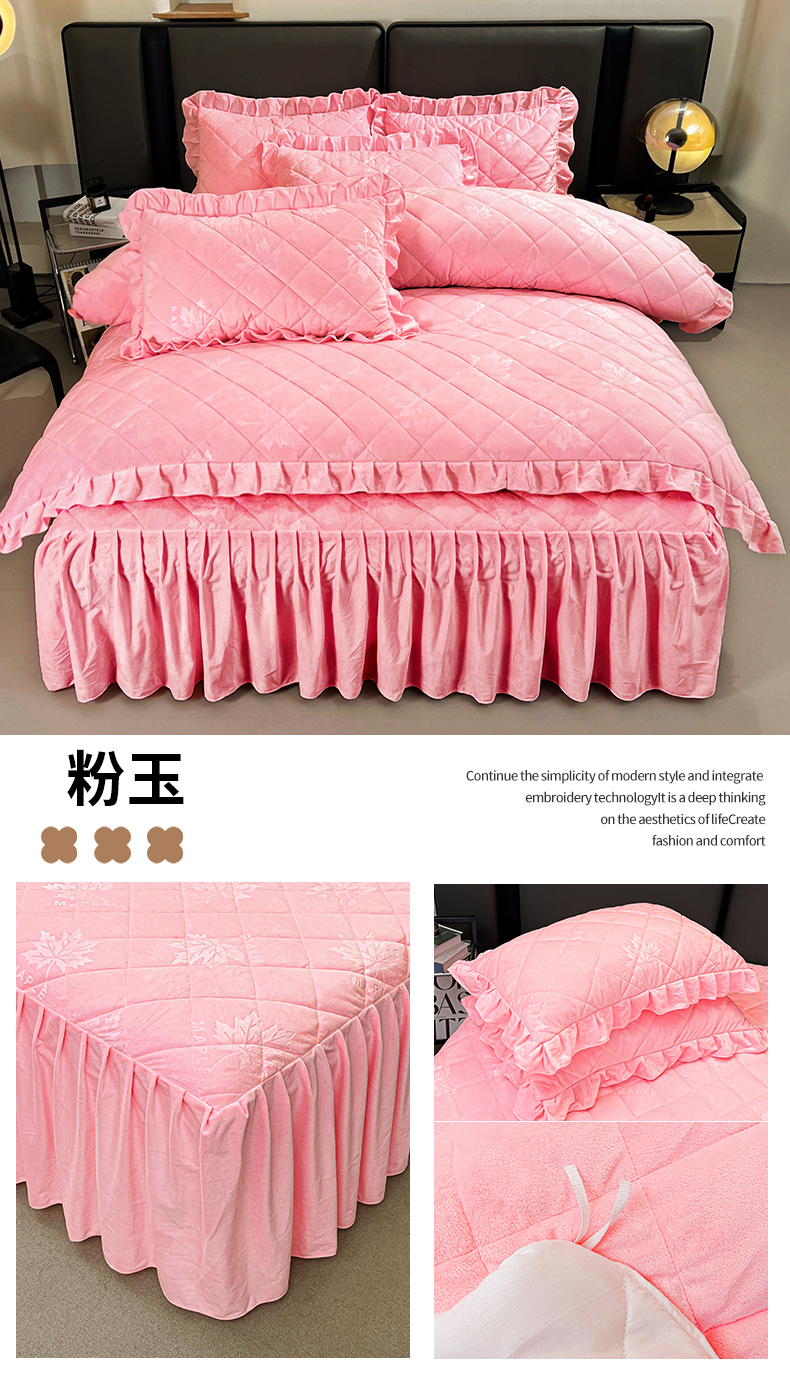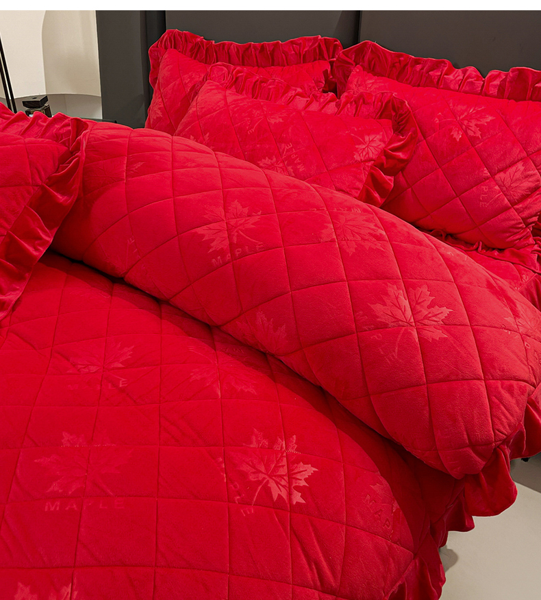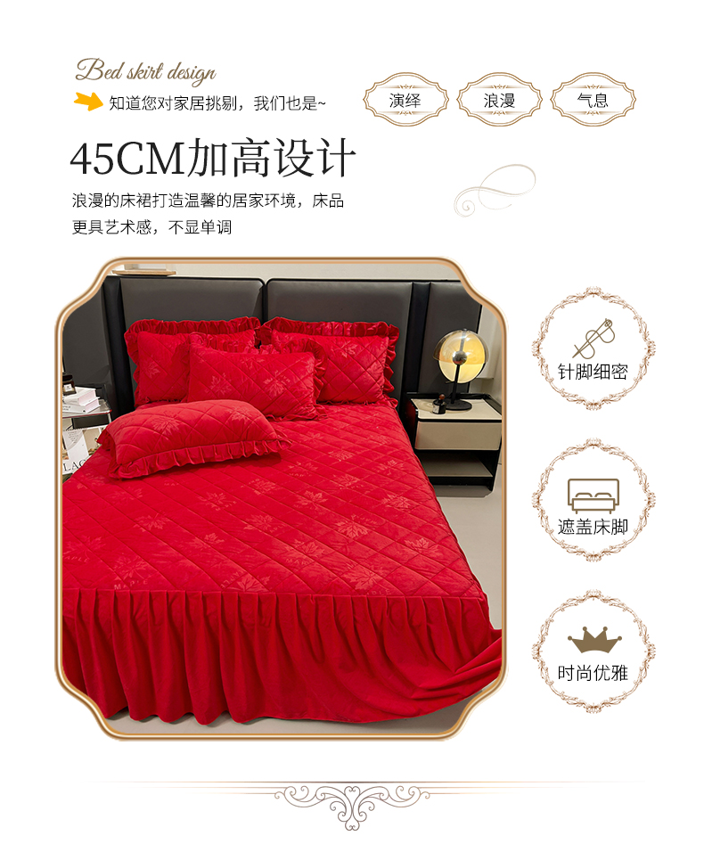 当前位置: 91家纺网 > 商品网购 > 床品套件 > 四件套 > 水晶绒四件套 > 屹成家纺 2025新款压花水晶绒床裙四件套 (四件套不低于210元起) 大红