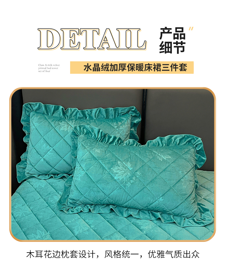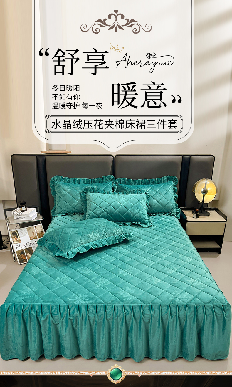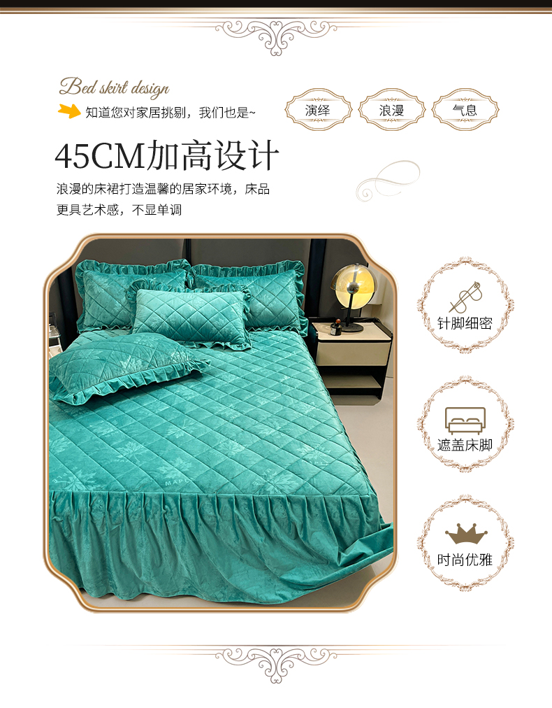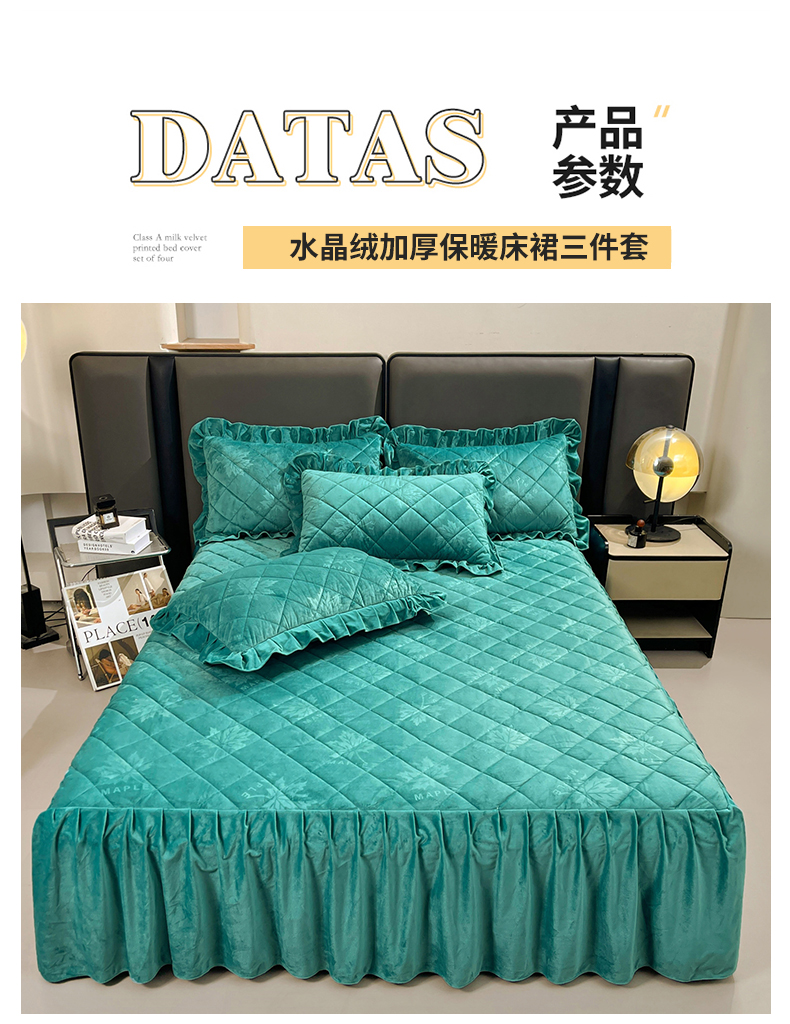当前位置: 91家纺网 > 商品网购 > 床品套件 > 三件套 > 屹成家纺 2025新款压花水晶绒床裙三件套 (床裙单件不低于95元起) 翡翠绿