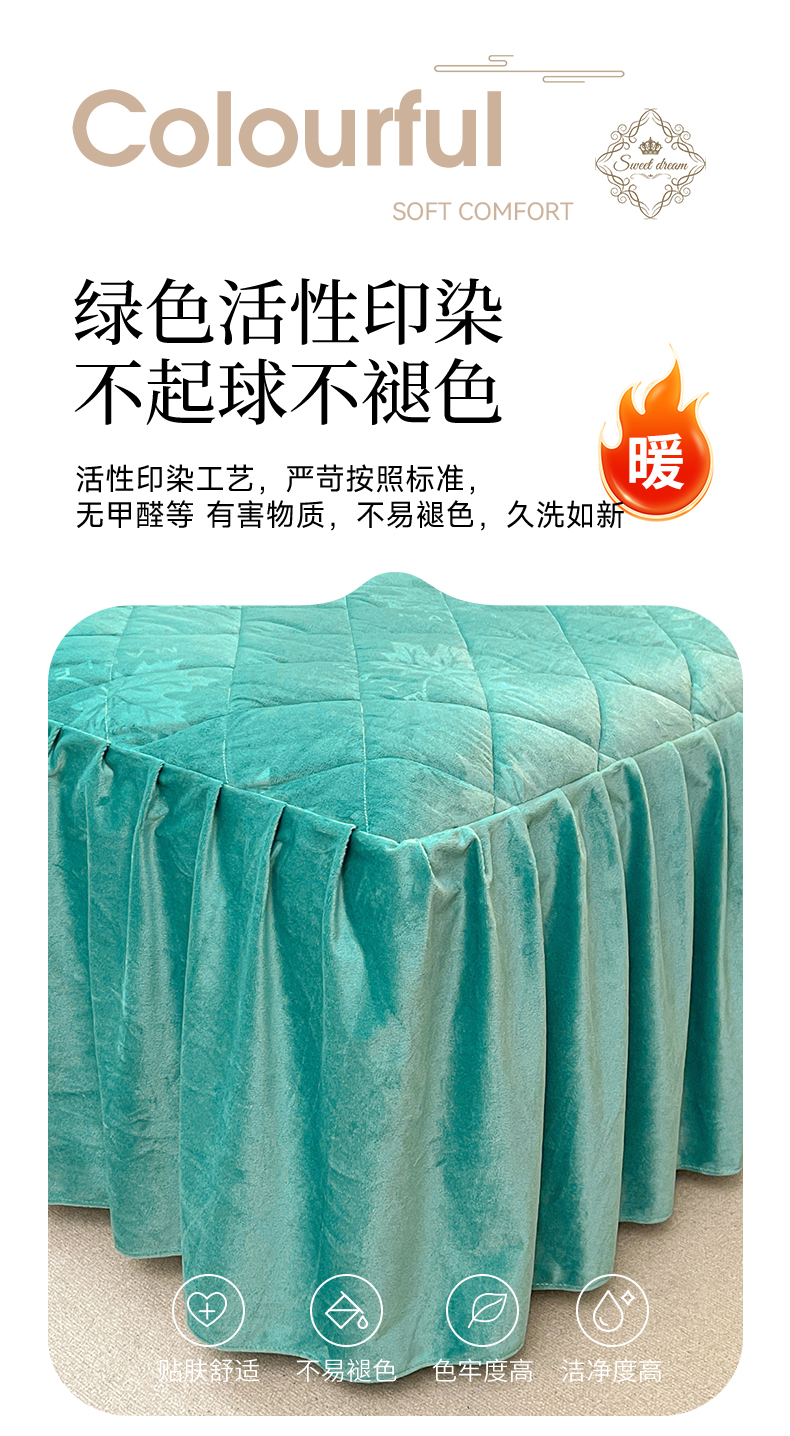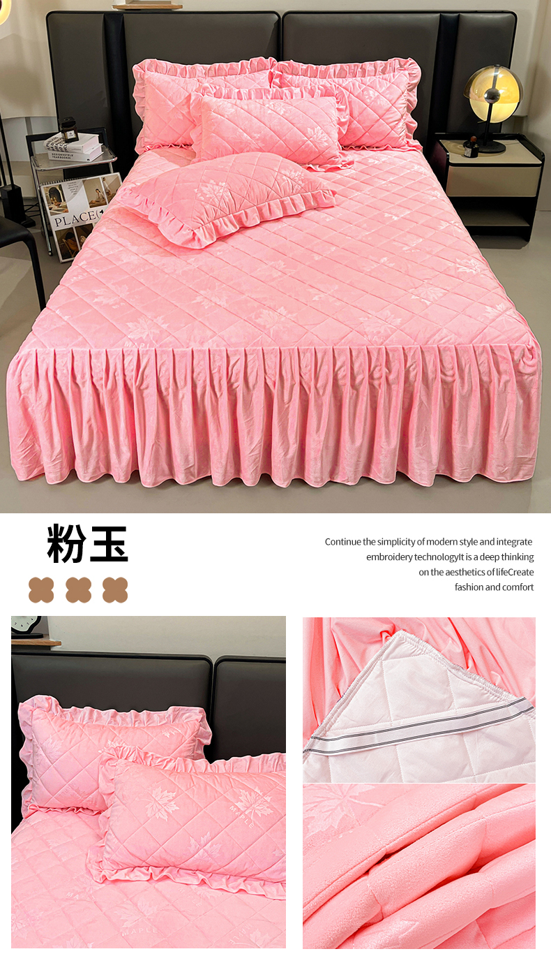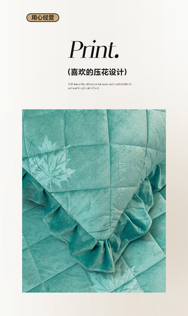 当前位置: 91家纺网 > 商品网购 > 床品套件 > 三件套 > 屹成家纺 2025新款压花水晶绒床裙三件套 (床裙单件不低于95元起) 翡翠绿
