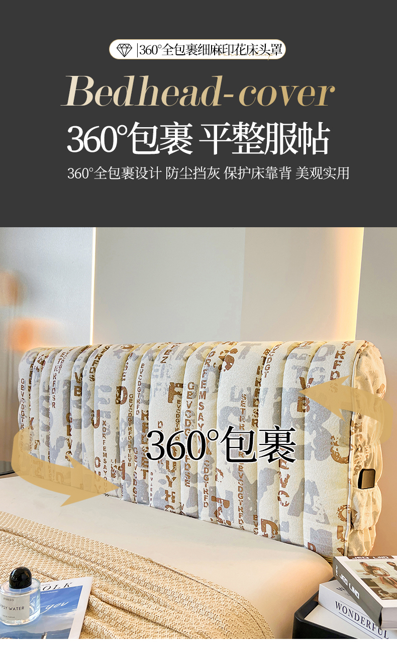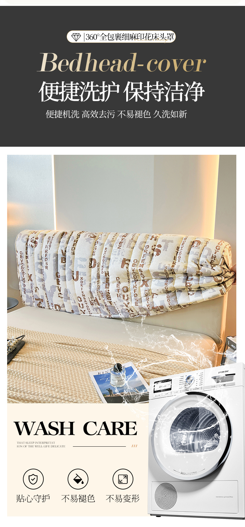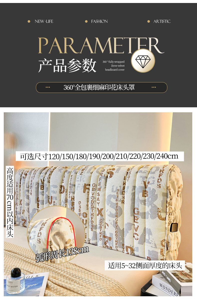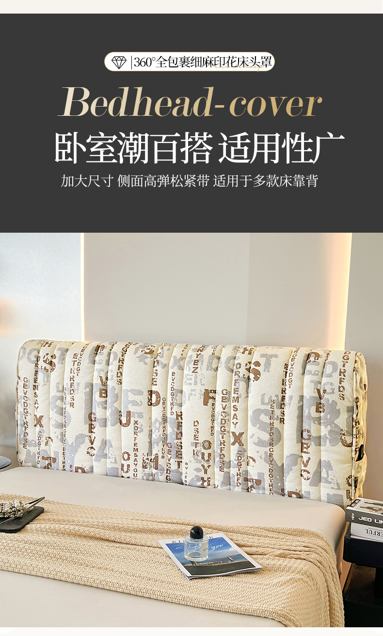 情恒家纺 2025新款细麻印花加厚双面全包床头罩 米驼