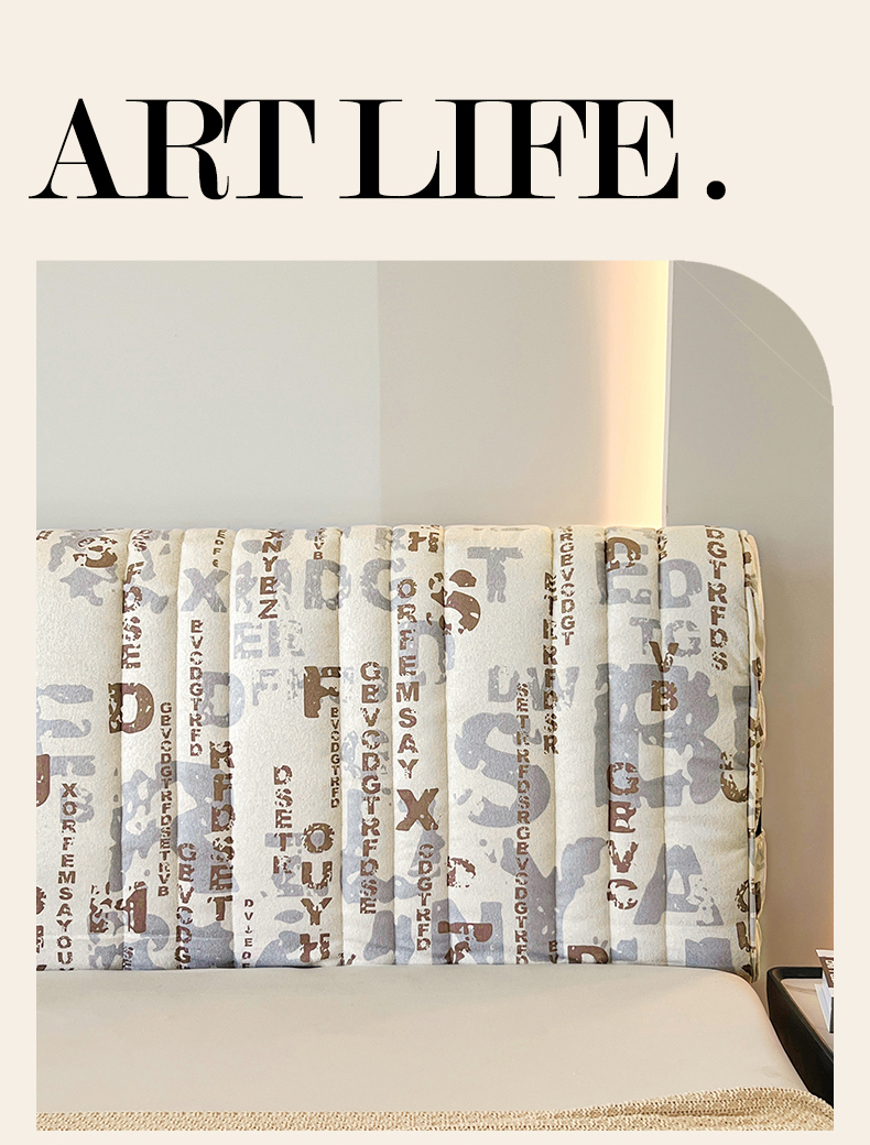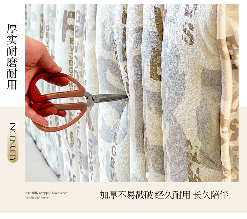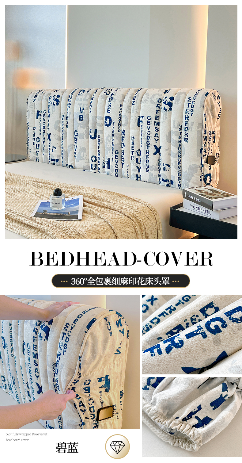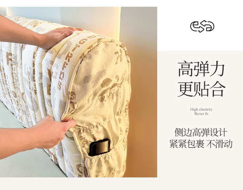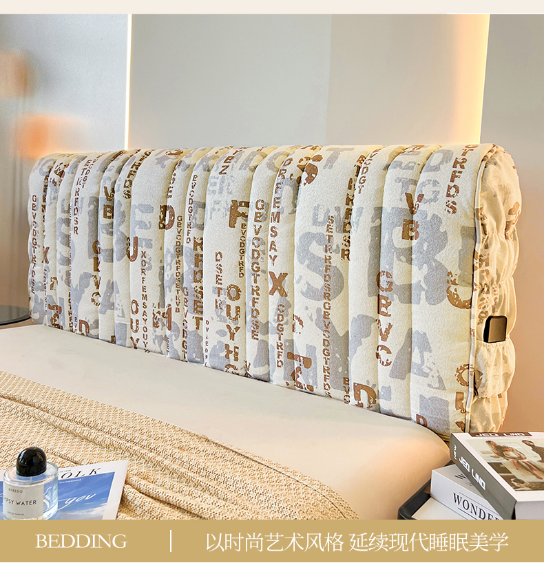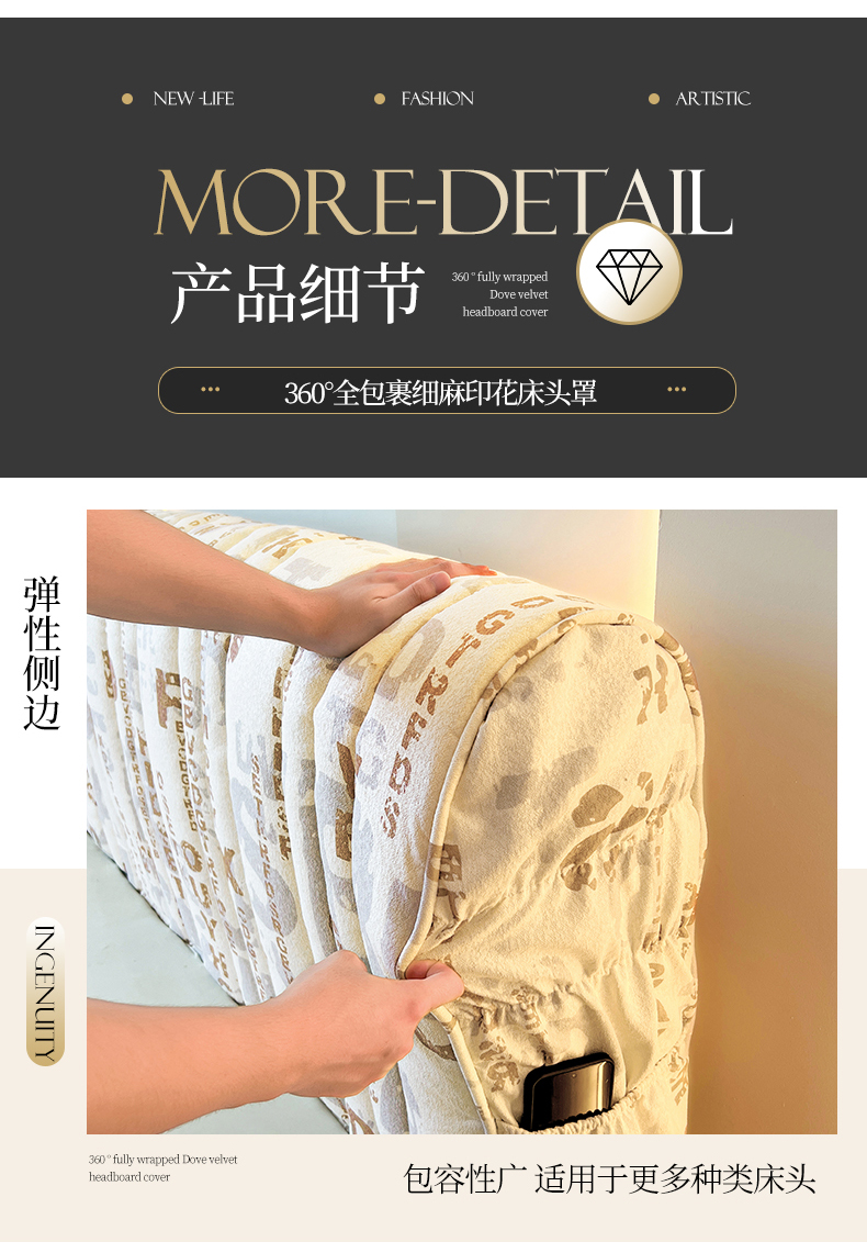情恒家纺 2025新款细麻印花加厚双面全包床头罩 米驼