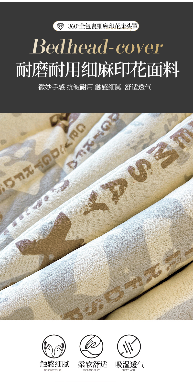 • 91家纺网 家纺一手货源 找家纺 情恒家纺 2025新款细麻印花加厚双面全包床头罩 米驼