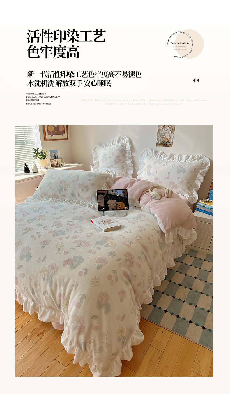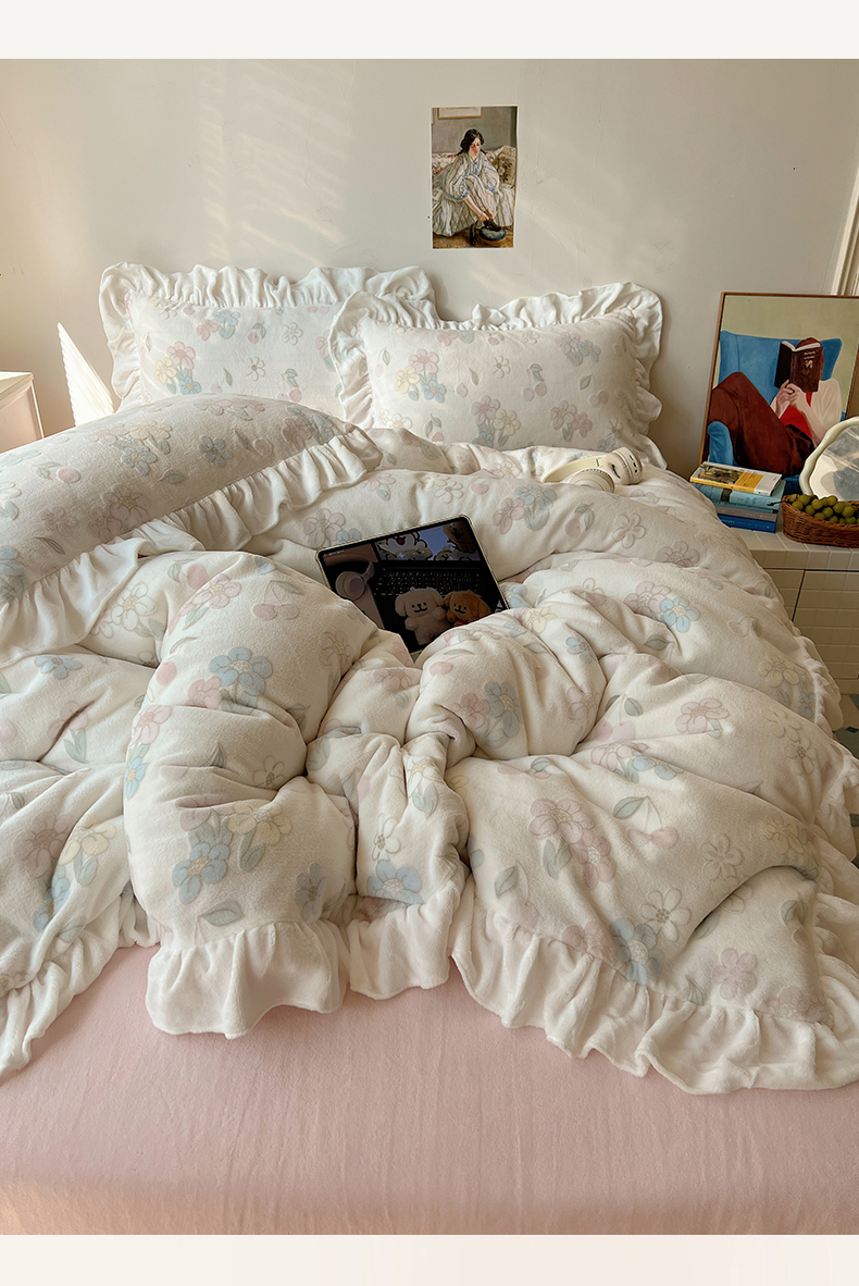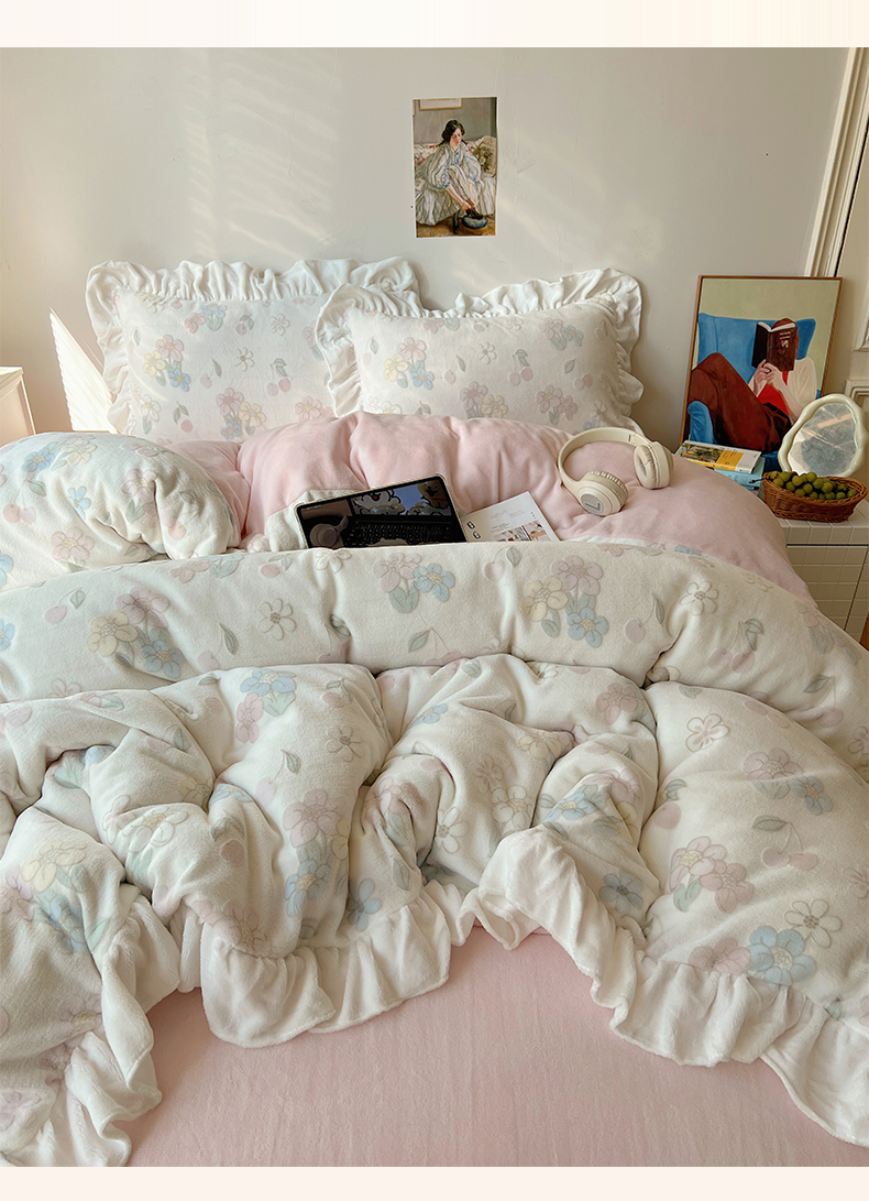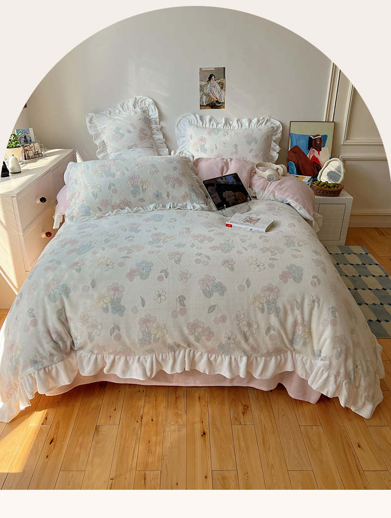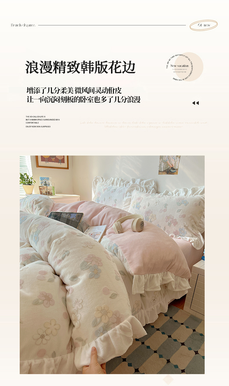 当前位置: 91家纺网 > 商品网购 > 床品套件 > 四件套 > 牛奶绒四件套 > 六巷胡同 2025新款韩系小清新博主风着色立体雕花A类牛奶绒四件套 花边款-浅棠花语