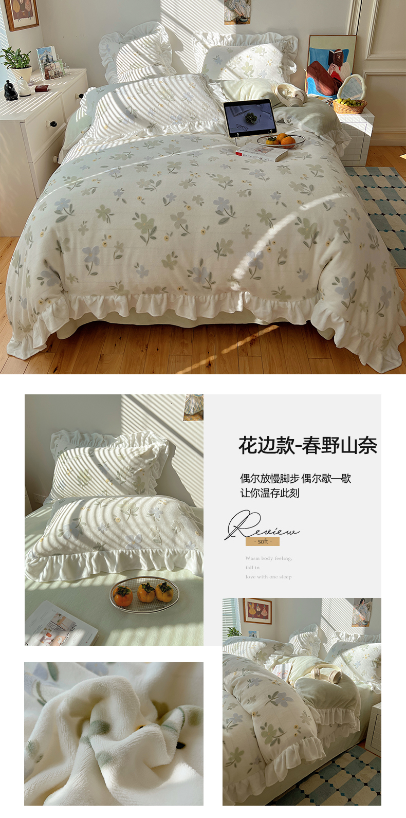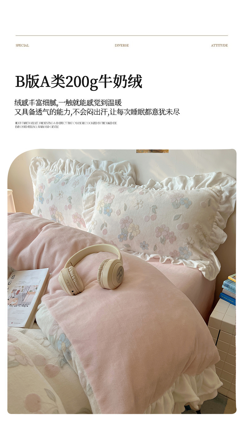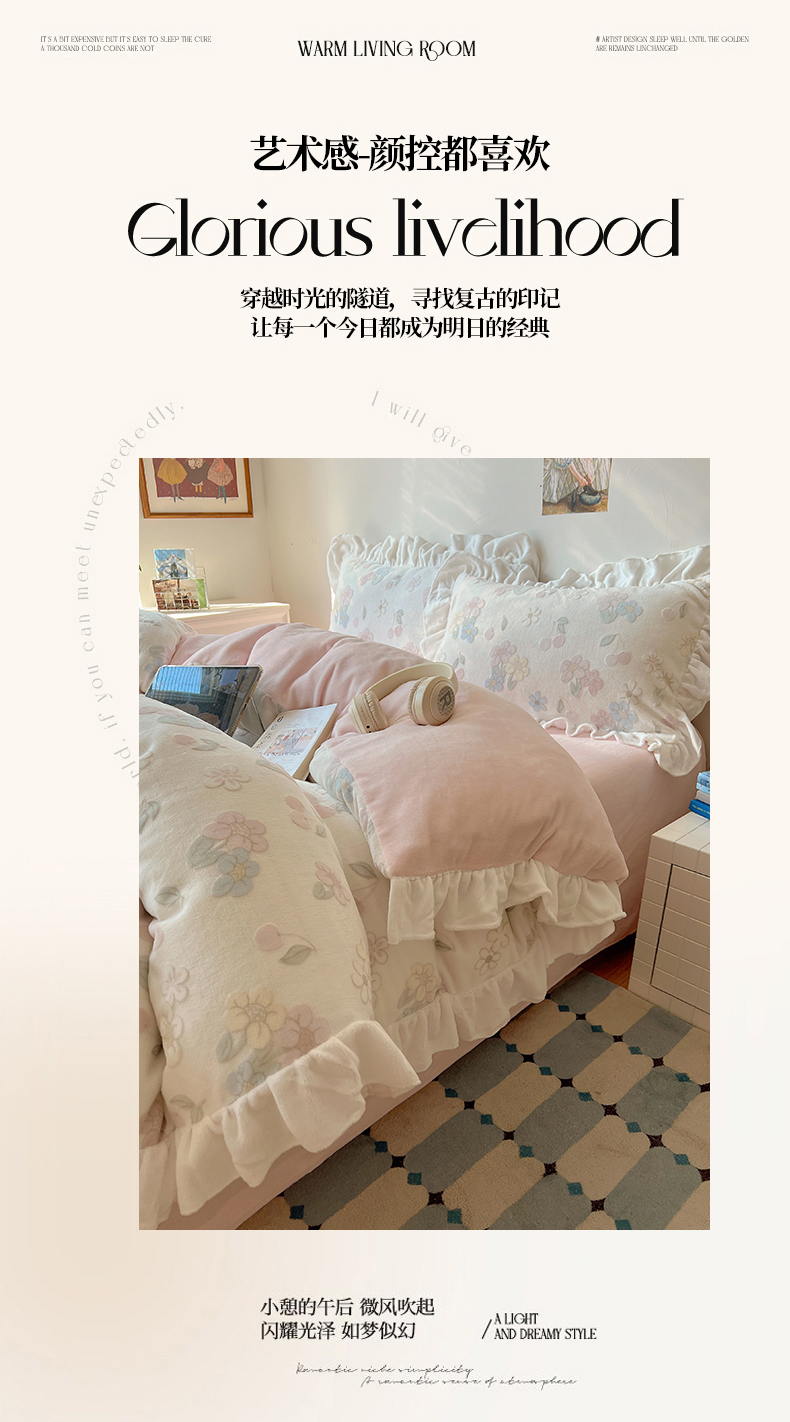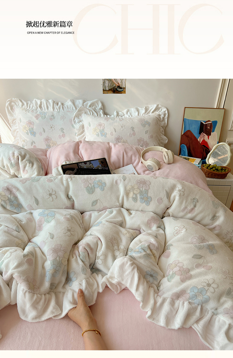 当前位置: 91家纺网 > 商品网购 > 床品套件 > 四件套 > 牛奶绒四件套 > 六巷胡同 2025新款韩系小清新博主风着色立体雕花A类牛奶绒四件套 花边款-浅棠花语